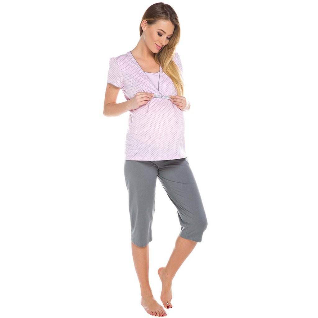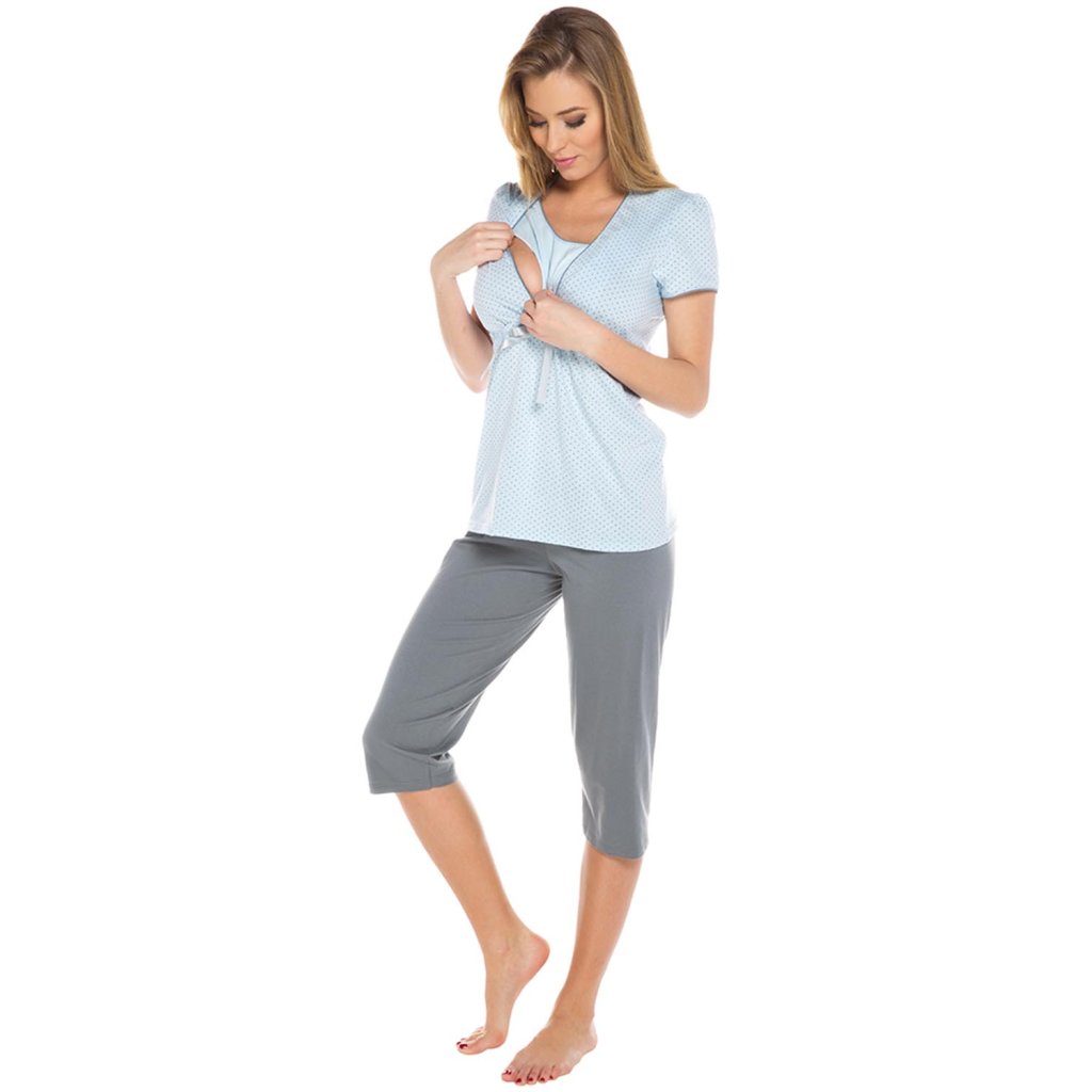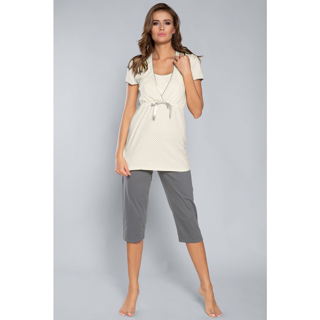 Pyžamo Felicita pre dojčiace, ale aj tehotné ženy.- Okrúhly výstrih- Ľahký prístup k prsiam- Krátke rukávy- Jednotné nohavice 3/4 dĺžky- Model vyrobený z kvalitného bavlneného úpletuZloženie: 100% bavlna.Dodatočné parametre