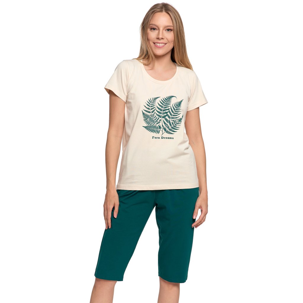 Elegantné dámske pyžamo.Voľné tričko so vzorom