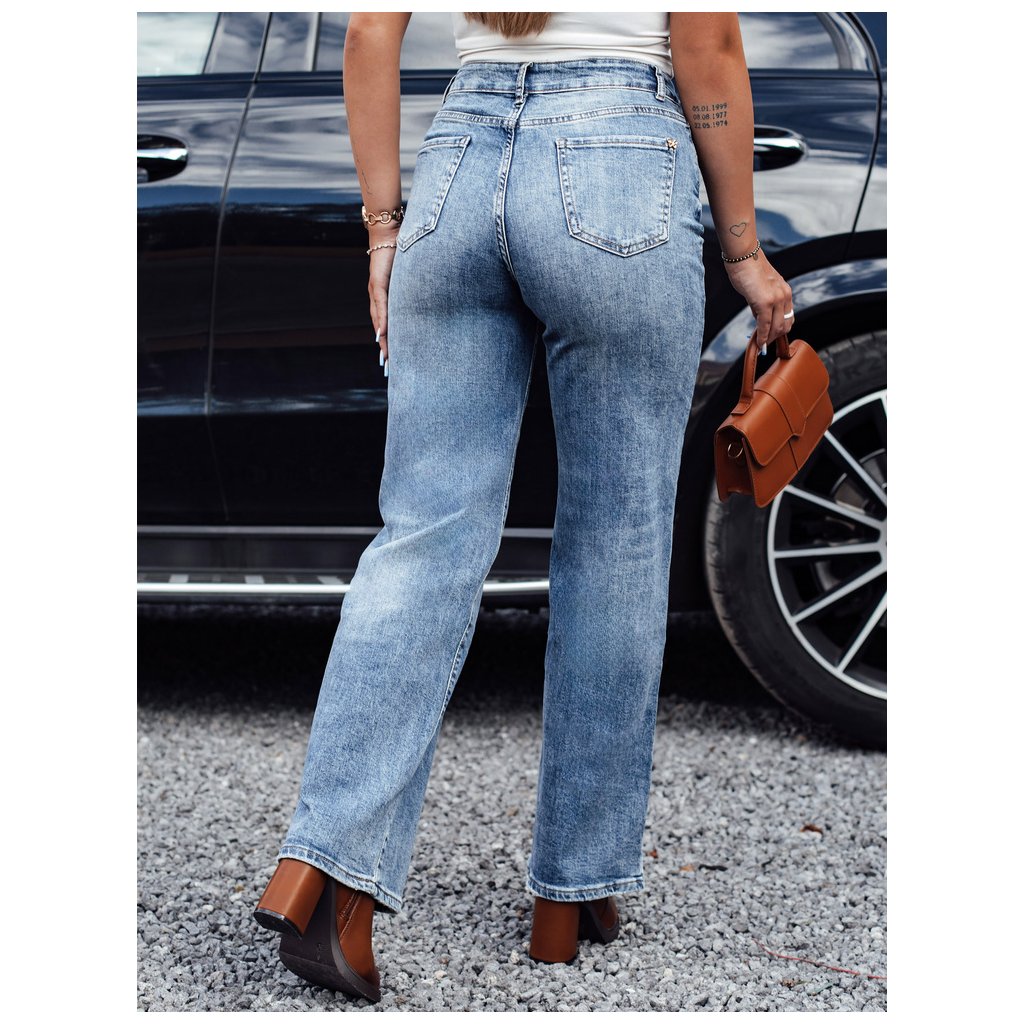 Štýlové džínsy s vysokým pásom, ktoré dokonale lichotia postave. Sú perfektne padnúce a pohodlné, takže sa skvele hodia k rôznym každodenným outfitom. Vysoko kvalitné remeselné spracovanie zaisťuje celodenné pohodlie, zatiaľ čo moderný strih dodáva každému outfitu nádych sofistikovanosti. Sú ideálne pre každé ročné obdobie a dobre sa hodia k ležérnym aj elegantnejším outfitom.