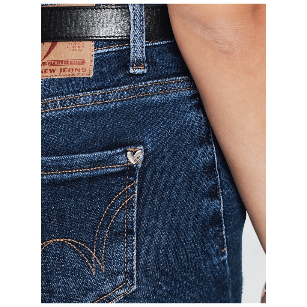 Tento úzky strih padne vašej postave a zdôrazní vaše nohy, pričom zostáva pohodlný na každodenné nosenie. Strečový denim sa hýbe s každým pohybom a klasický päťvreckový dizajn zaisťuje funkčnosť. Decentná povrchová úprava a hladká textúra látky uľahčujú kombinovanie s vašimi obľúbenými základnými kúskami, motorkárskou bundou alebo elegantným sakom.
