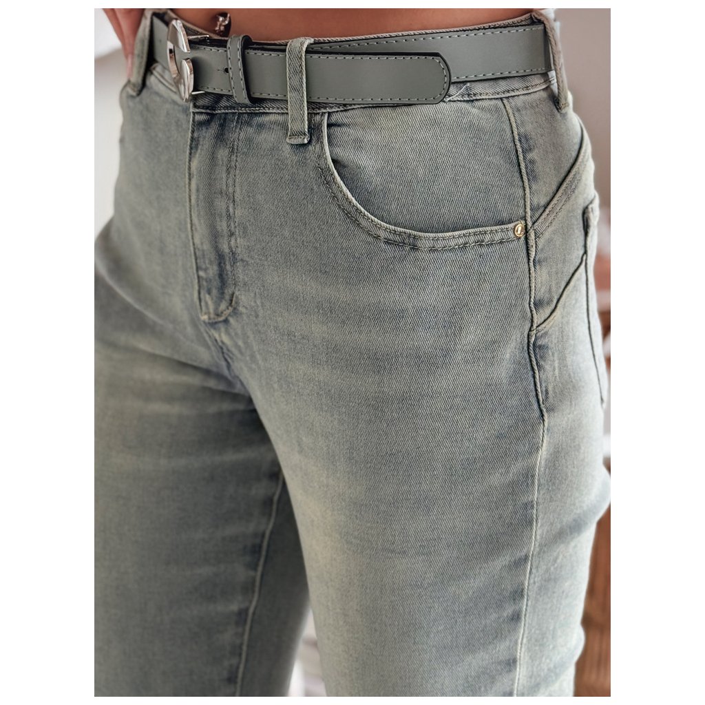 Elegantné džínsy slim fit pre ženy, ktoré si cenia pohodlie a módny vzhľad. Vysoký pás sťahuje pás, zatiaľ čo ozdobné vrecká dodávajú nádych šarmu. Štýl sa vyznačuje zapínaním na gombíky a zips a opaskom, ktorý zdôrazňuje vzhľad. Ideálne na každodenné nosenie a dobre sa hodia k ležérnym aj elegantným doplnkom.