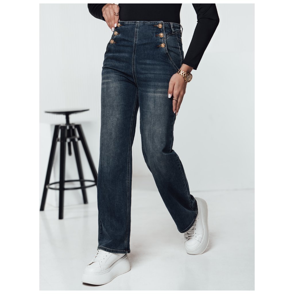 Nohavice s vysokým pásom, ktoré kombinujú pohodlie a eleganciu. Zlaté gombíky v páse dodávajú nositeľnosť a šik, zatiaľ čo rovný strih predlžuje siluetu. Ideálne pre ležérne aj formálnejšie outfity. Materiál zaručuje celodenné pohodlie.