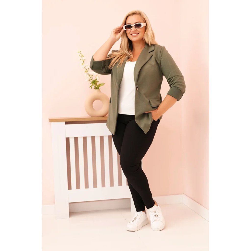 Elegantné a pohodlné dámske sako z viskózy plus size, ktoré dokonale spája štýlový vzhľad s komfortom nosenia. Vyrobené z príjemnej na dotyk zmesi viskózy, polyesteru a elastanu, skvele sa prispôsobí postave, neobmedzuje pohyby a hodí sa ako na každodenné nosenie, tak do práce či na schôdzky. Model zapínaný na jeden gombík, s klasickým golierom a ozdobnými klopami pri vreckách – dodáva šarm každej štylizácii.