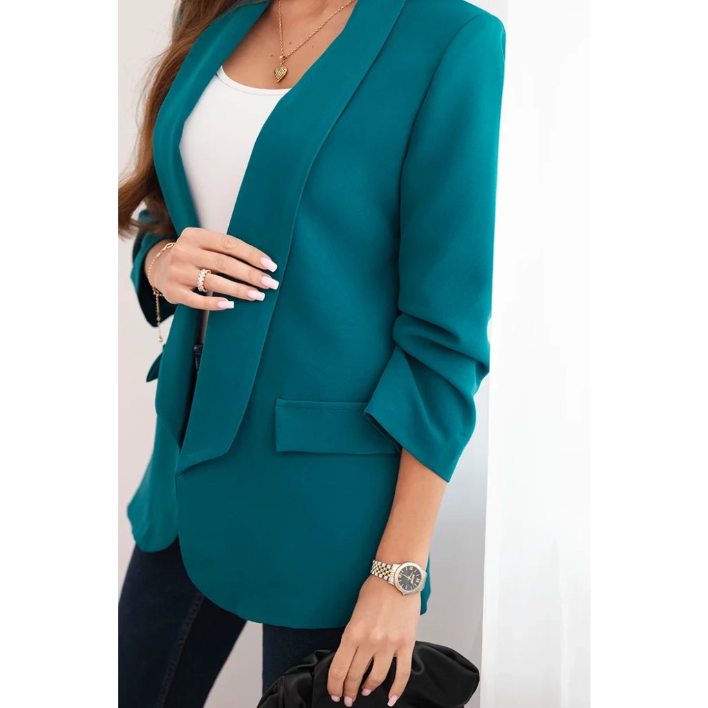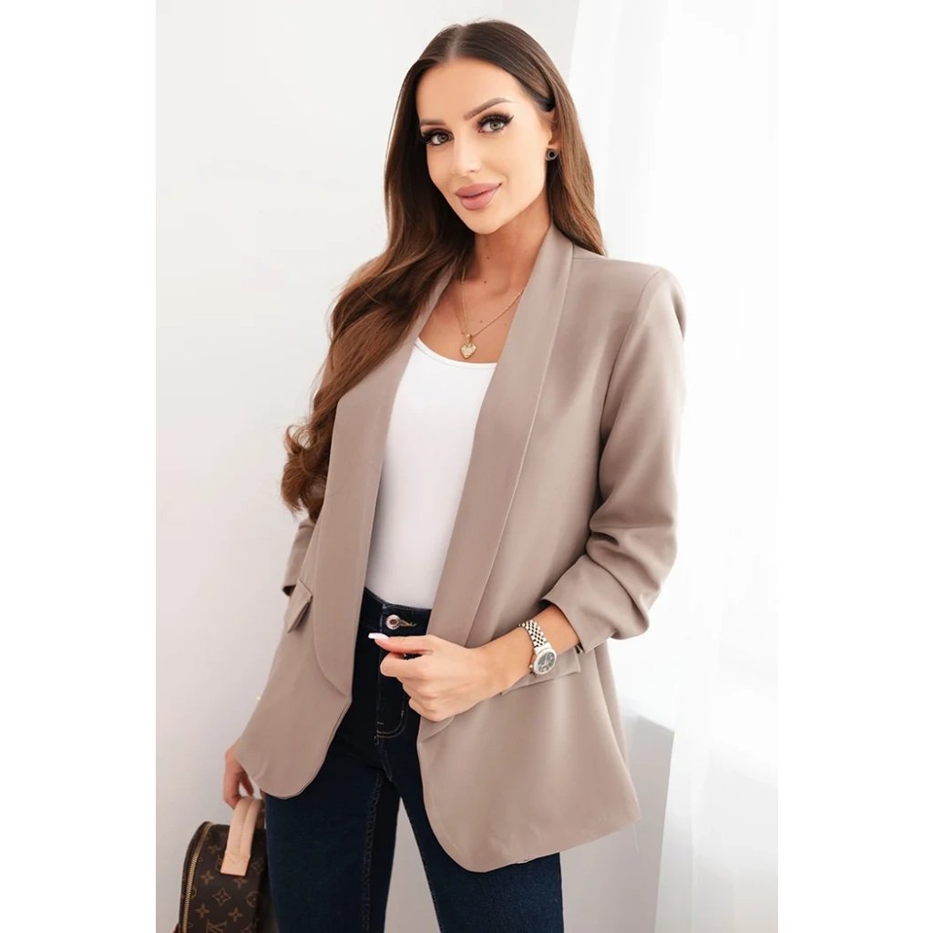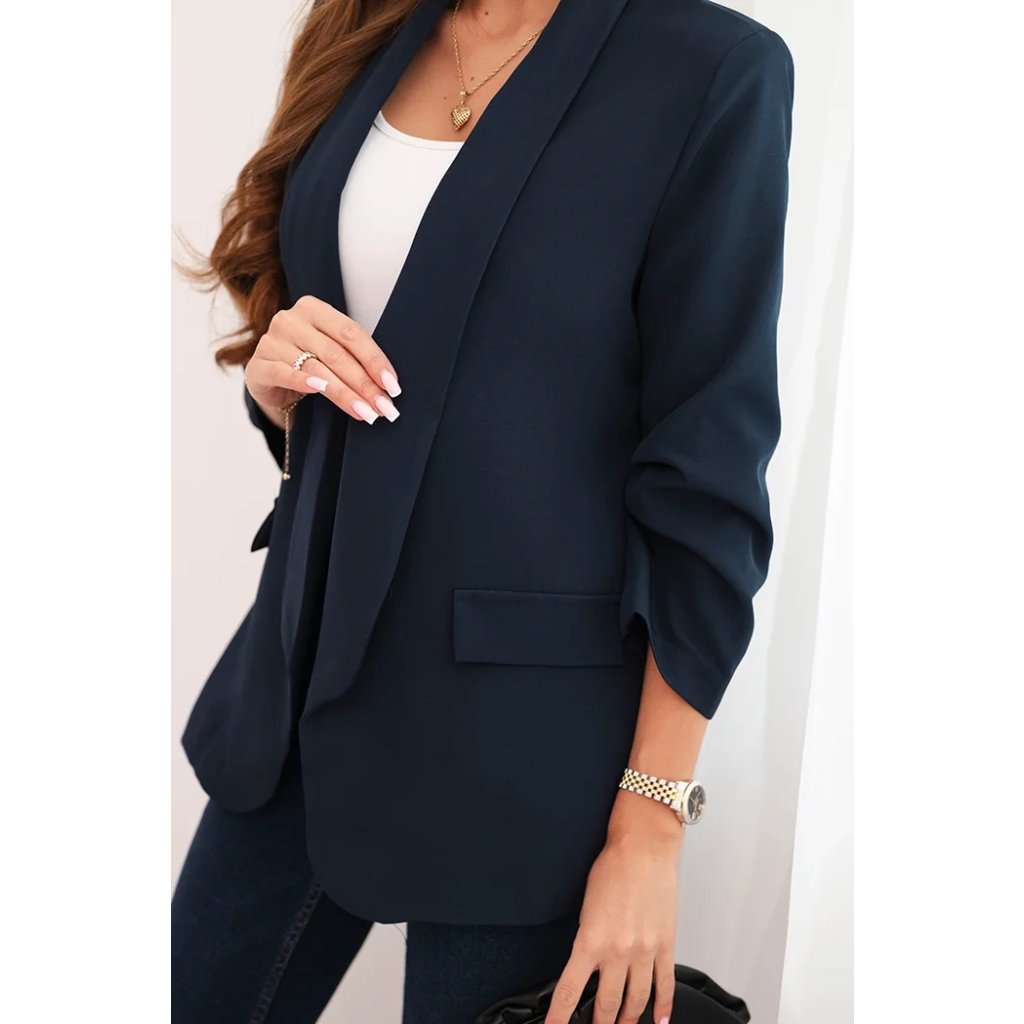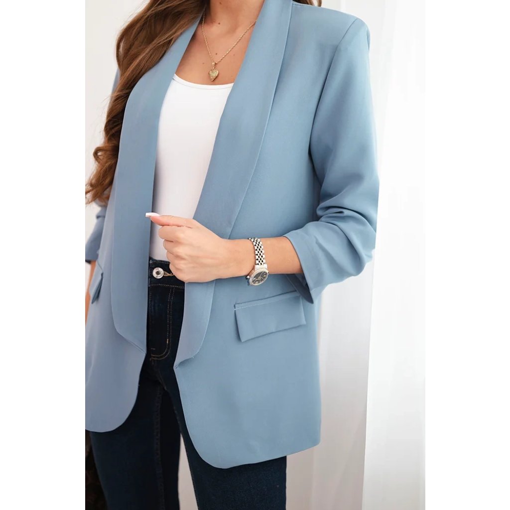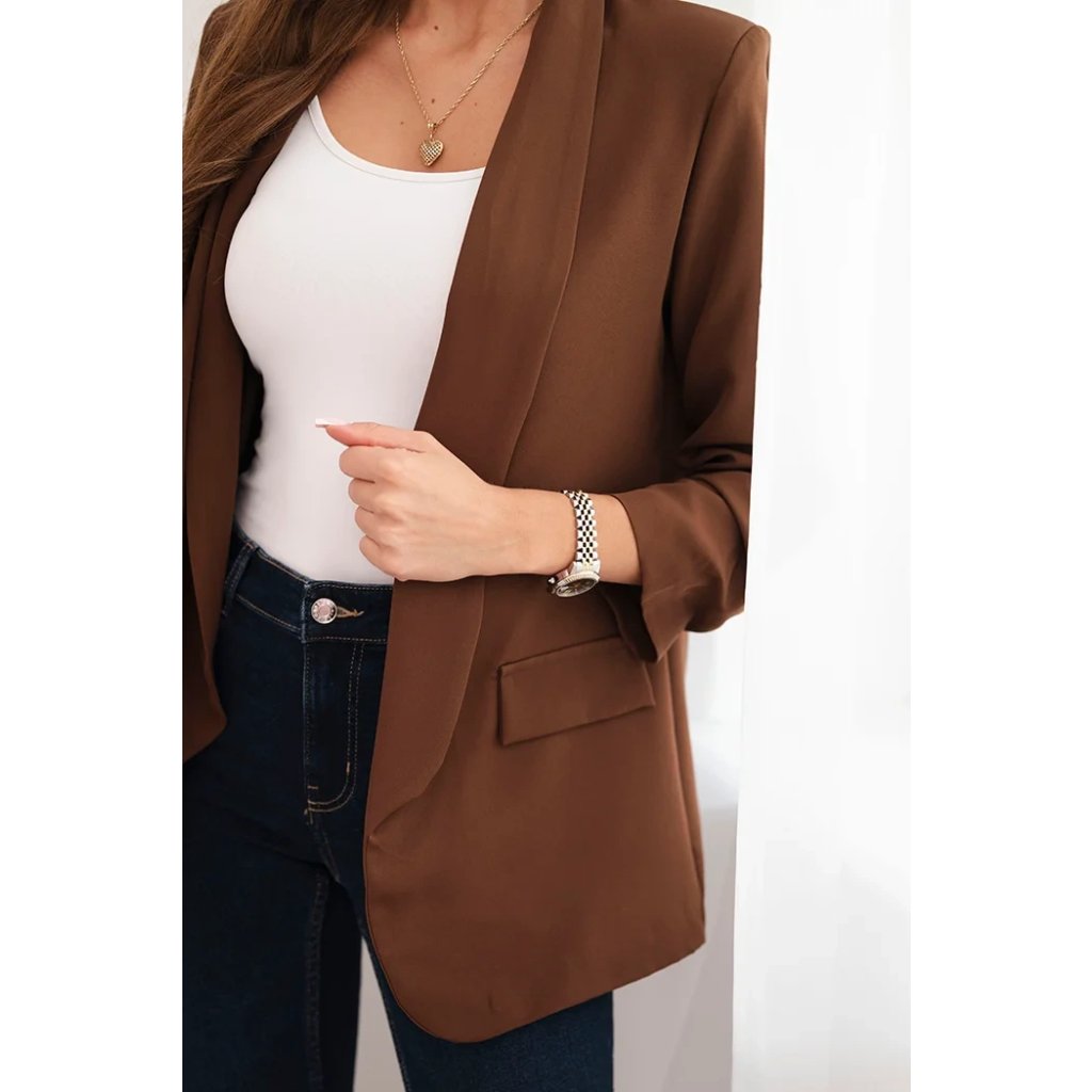 Elegantné dámske sako v klasickom štýle je ideálnou voľbou pre ženy, ktoré si cenia nadčasovú módu a pohodlie pri nosení. Model bez zapínania, s jednoduchým, voľným strihom a podšívkou, sa dokonale prispôsobuje postave a dodáva ľahkosť každému outfitu. Kratší rukáv a dĺžka siahajúca po boky ju robia ideálnou ako do práce, tak na bežné nosenie.