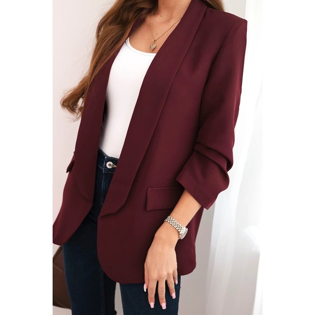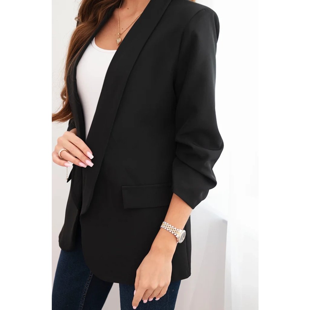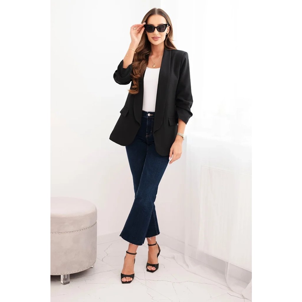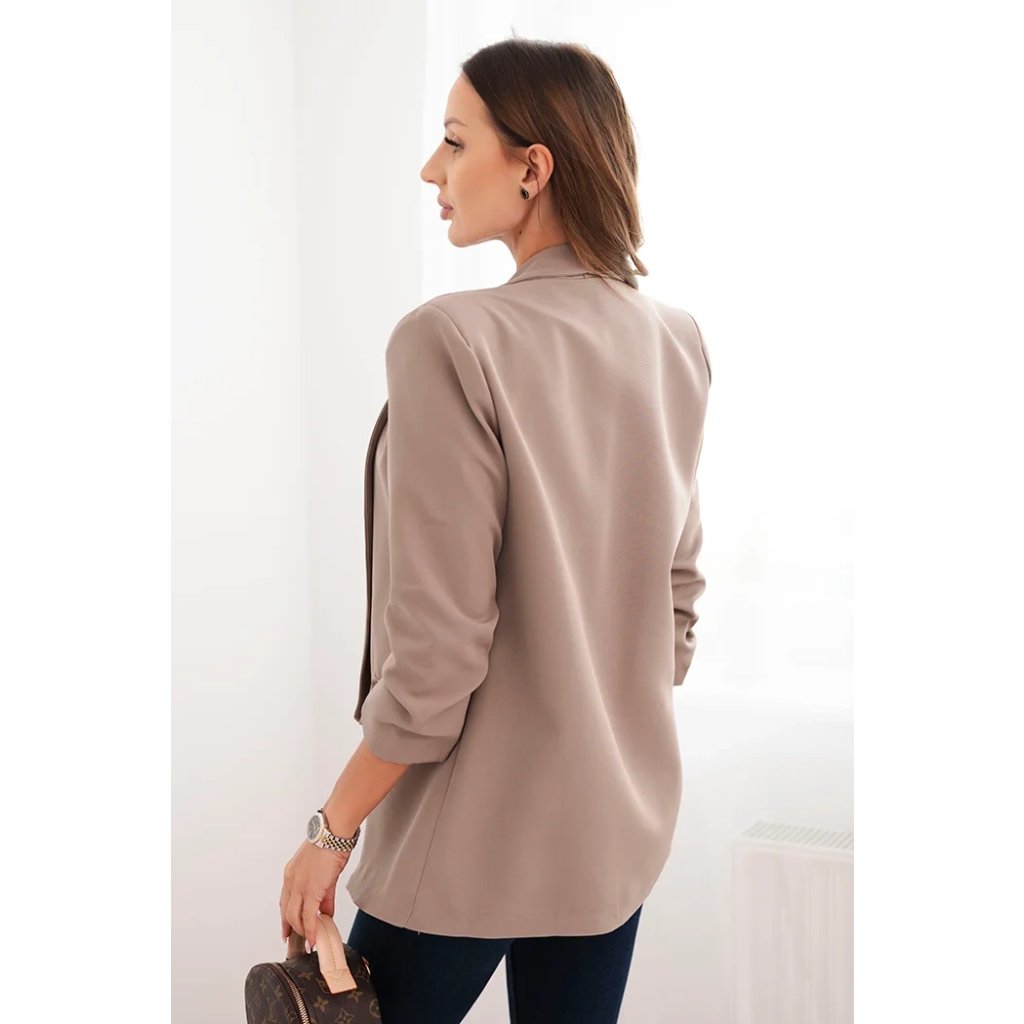 Elegantné dámske sako v klasickom štýle je ideálnou voľbou pre ženy, ktoré si cenia nadčasovú módu a pohodlie pri nosení. Model bez zapínania, s jednoduchým, voľným strihom a podšívkou, sa dokonale prispôsobuje postave a dodáva ľahkosť každému outfitu. Kratší rukáv a dĺžka siahajúca po boky ju robia ideálnou ako do práce, tak na bežné nosenie.