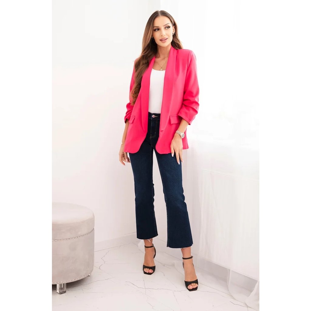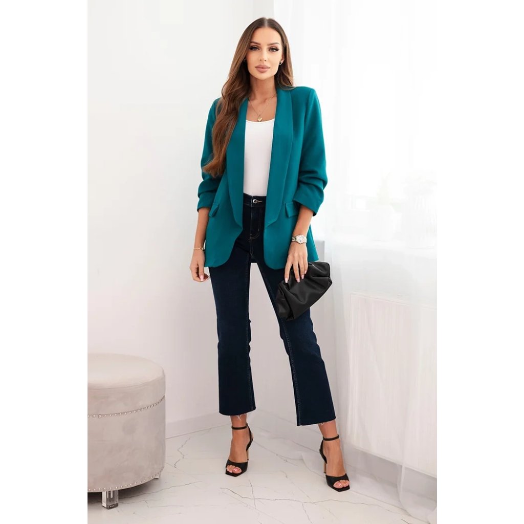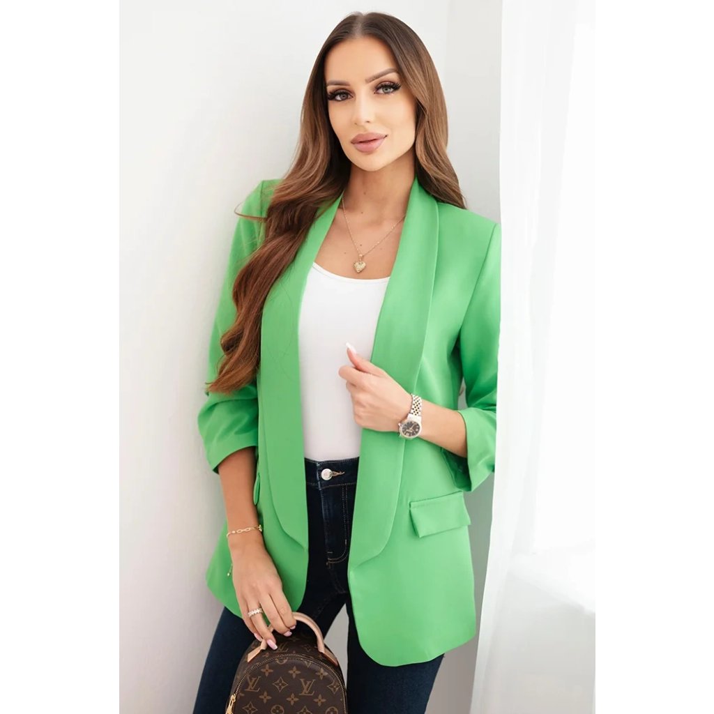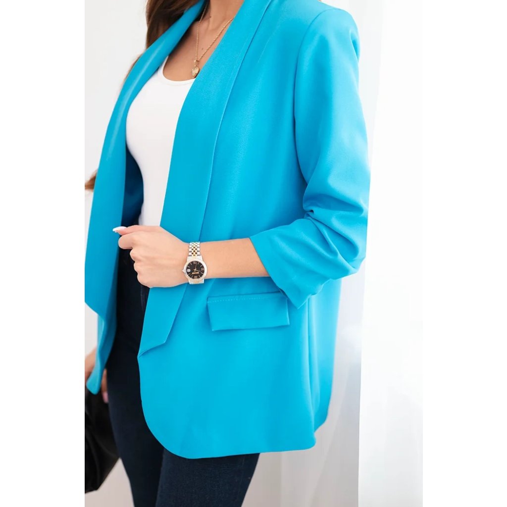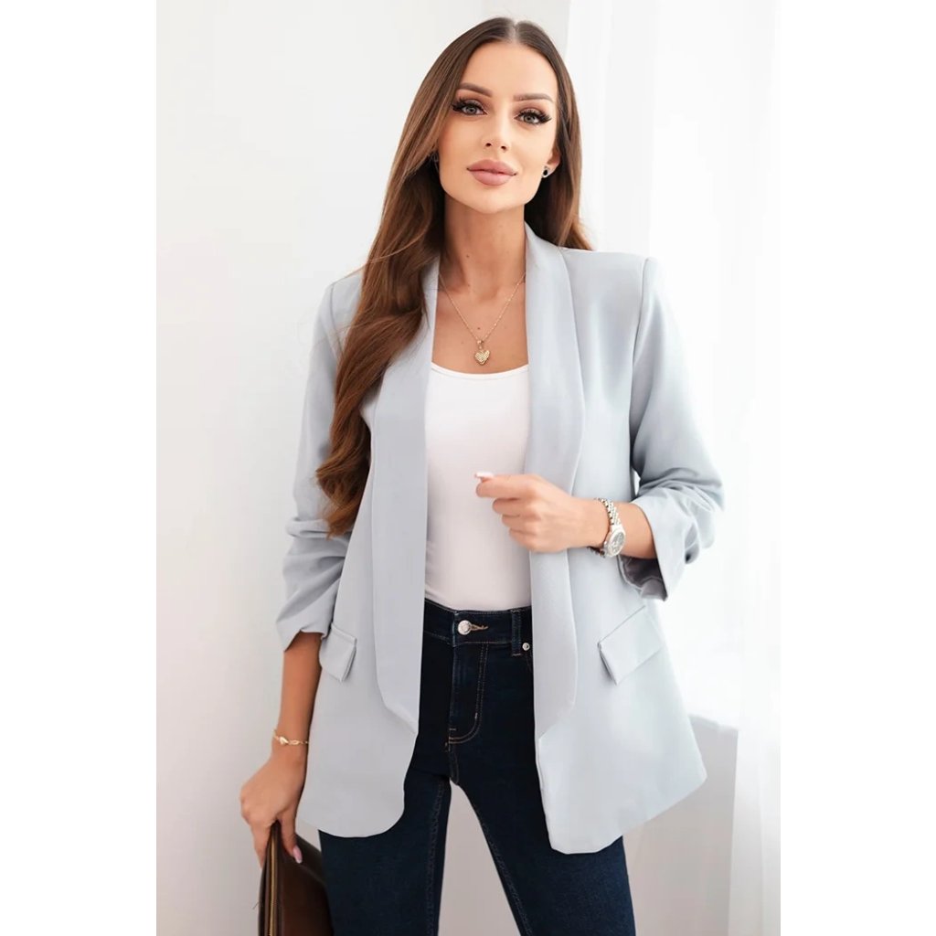 Elegantné dámske sako v klasickom štýle je ideálnou voľbou pre ženy, ktoré si cenia nadčasovú módu a pohodlie pri nosení. Model bez zapínania, s jednoduchým, voľným strihom a podšívkou, sa dokonale prispôsobuje postave a dodáva ľahkosť každému outfitu. Kratší rukáv a dĺžka siahajúca po boky ju robia ideálnou ako do práce, tak na bežné nosenie.
