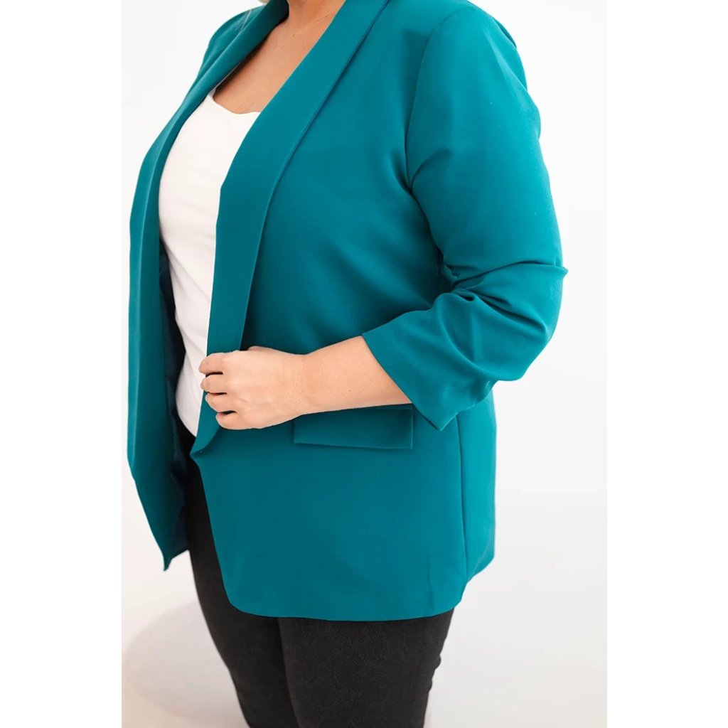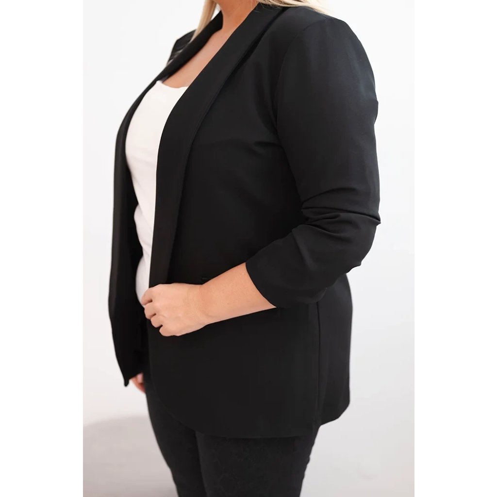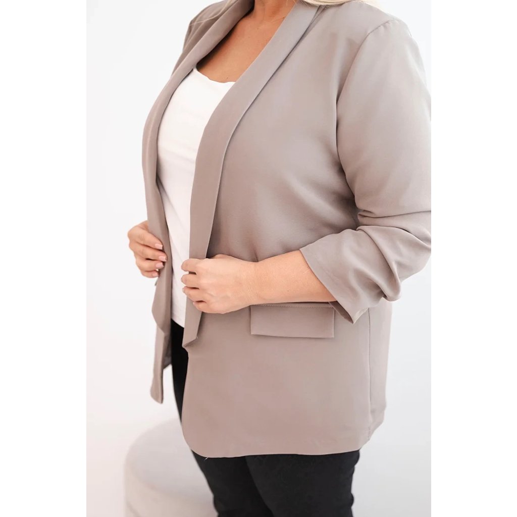 Elegantné dámske sako plus size je vynikajúcou voľbou pre ženy, ktoré oceňujú klasiku, pohodlie a štýl. Model bez zapínania s jednoduchým strihom skvele sedí na postave, zakrýva nedostatky a zvýrazňuje ženské tvary. Jemná podšívka zaisťuje komfort nosenia a dĺžka zakrývajúca boky spôsobuje, že sako vyzerá veľmi výhodne.