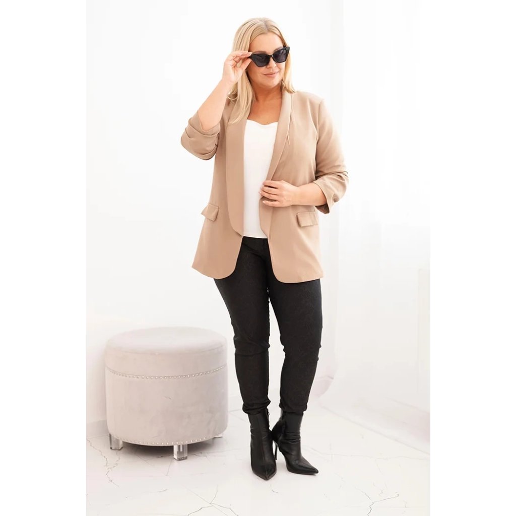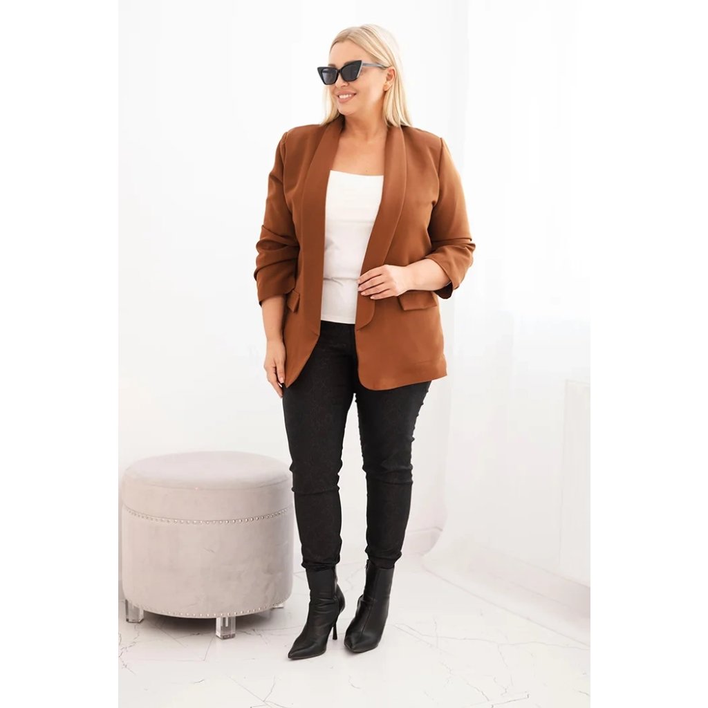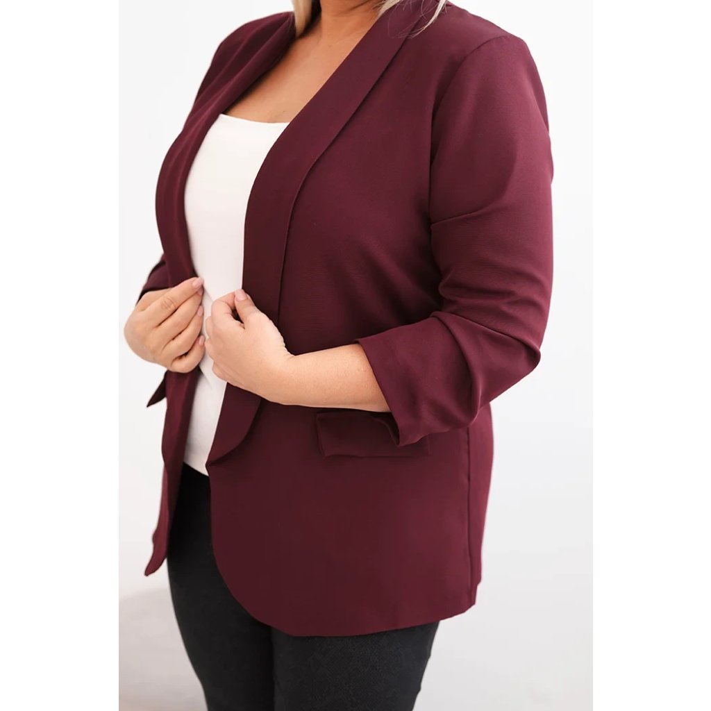 Elegantné dámske sako plus size je vynikajúcou voľbou pre ženy, ktoré oceňujú klasiku, pohodlie a štýl. Model bez zapínania s jednoduchým strihom skvele sedí na postave, zakrýva nedostatky a zvýrazňuje ženské tvary. Jemná podšívka zaisťuje komfort nosenia a dĺžka zakrývajúca boky spôsobuje, že sako vyzerá veľmi výhodne.