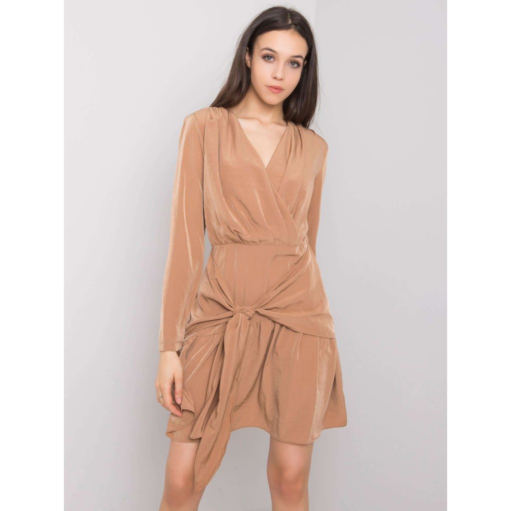 RUE PARIS Svetlo hnedé šaty s viazaním.