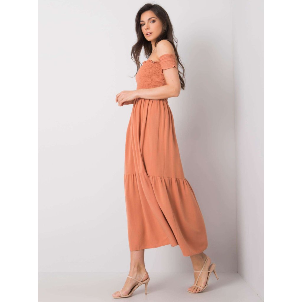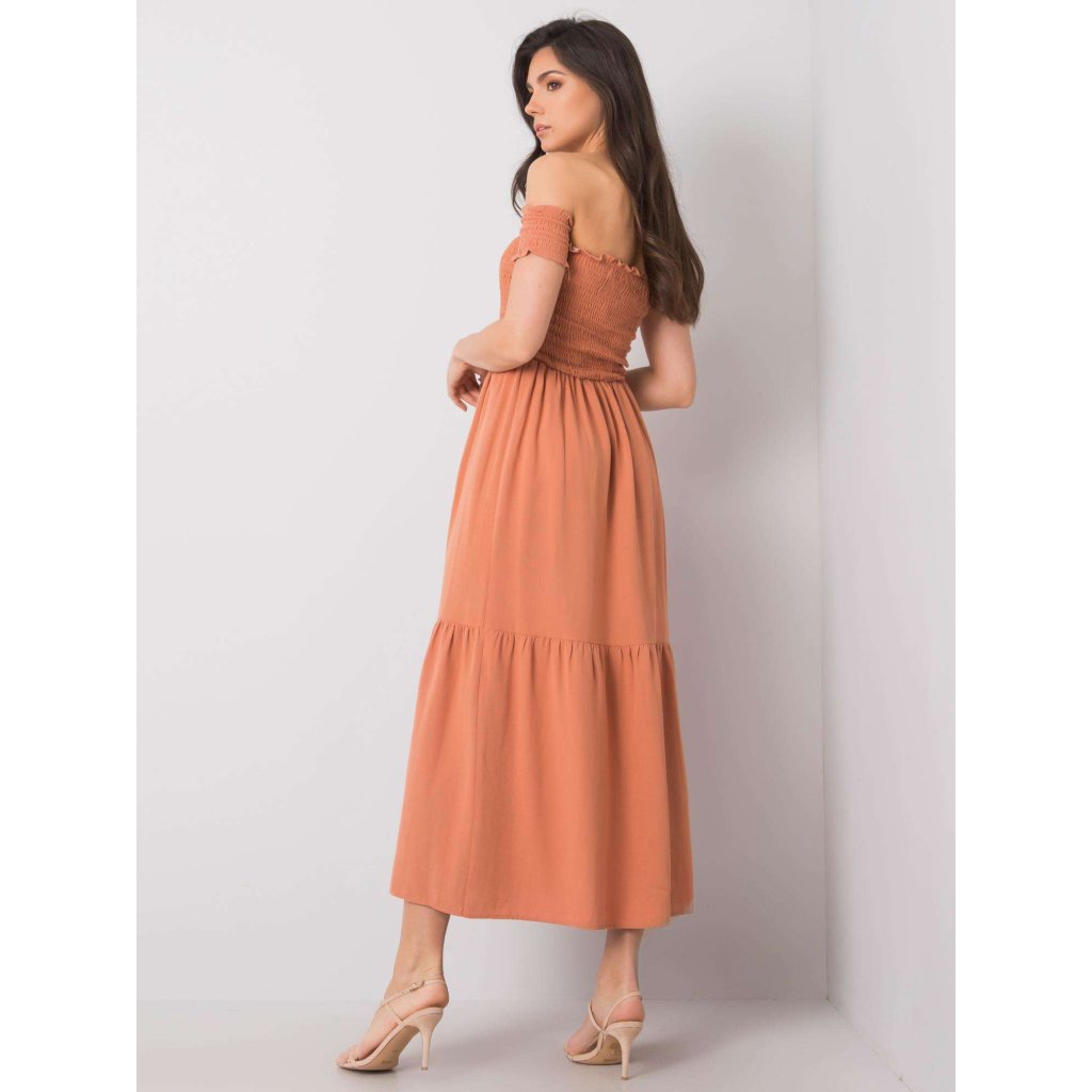 RUE PARIS Oranžové dlhé šaty s volánom.
