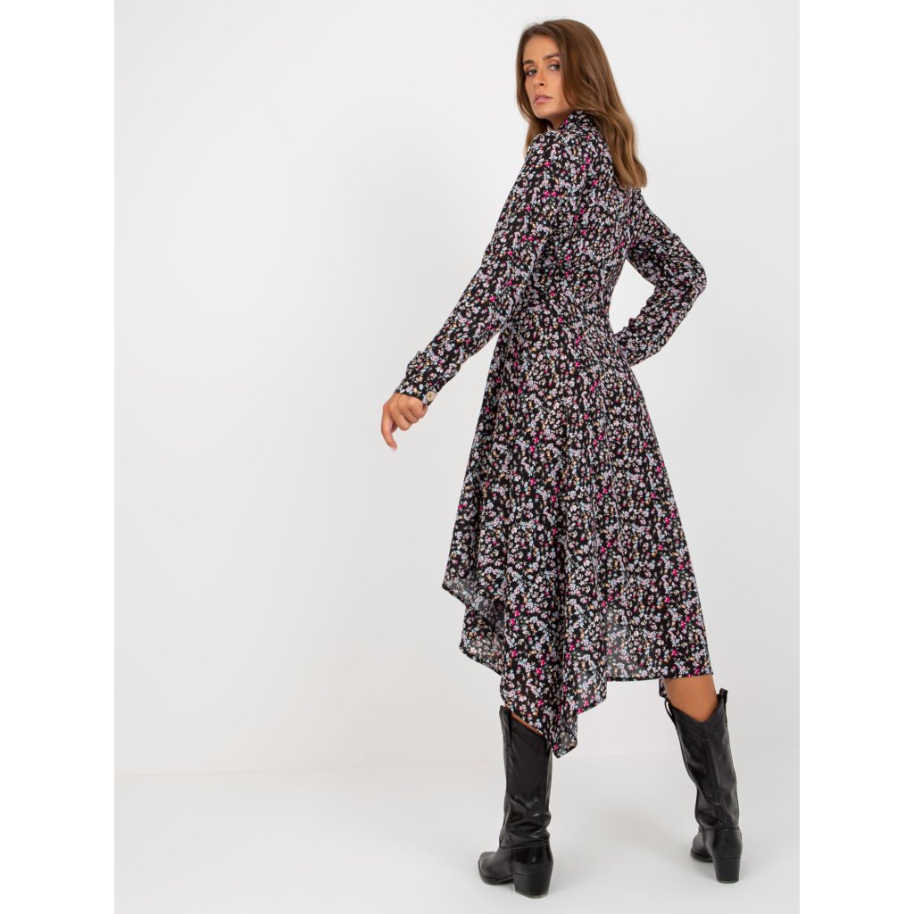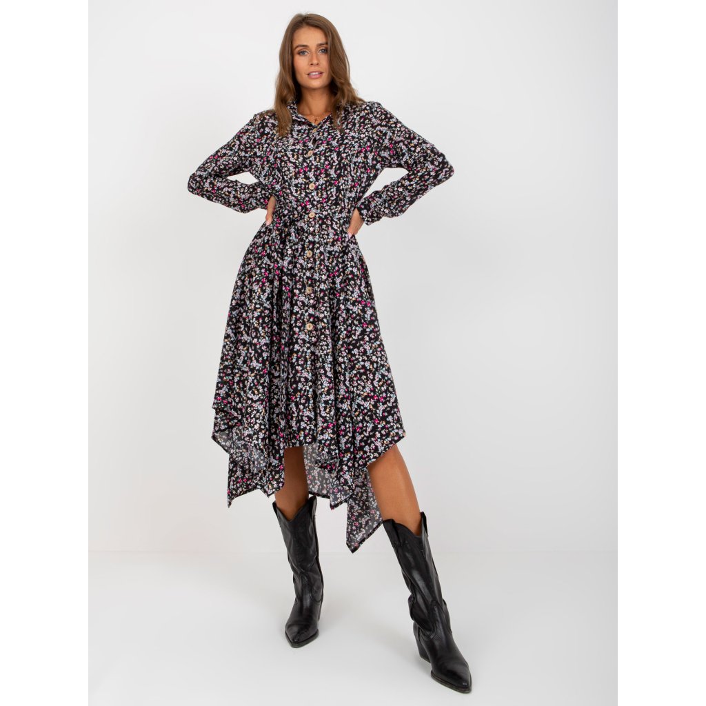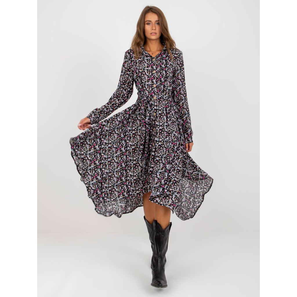 Čierne vzorované šaty s opaskom od RUE PARIS .