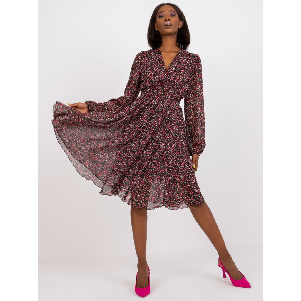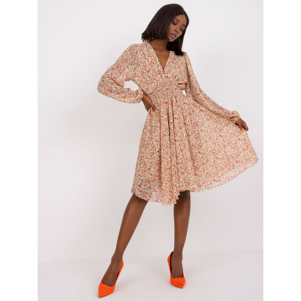 Modelka má na sebe veľkosť S. Rozmery modelky: výška 162 cm, prsia 80 cm, pás 63 cm, boky 80 cm.