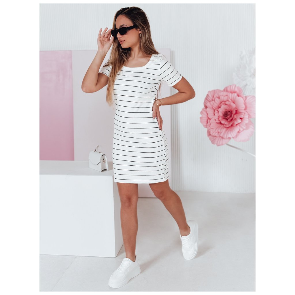 Tieto minišaty s rebrovaním lichotia postave a poskytujú každodenné pohodlie. Mäkká, pružná tkanina sa prispôsobí postave, zatiaľ čo krátke rukávy a okrúhly výstrih dodávajú šatám klasický šarm. Jemné pruhy dodávajú nadčasový štýl, ideálne ako na každodenné nosenie, tak na neformálne stretnutia. Šaty sú ideálne na jar alebo leto.
