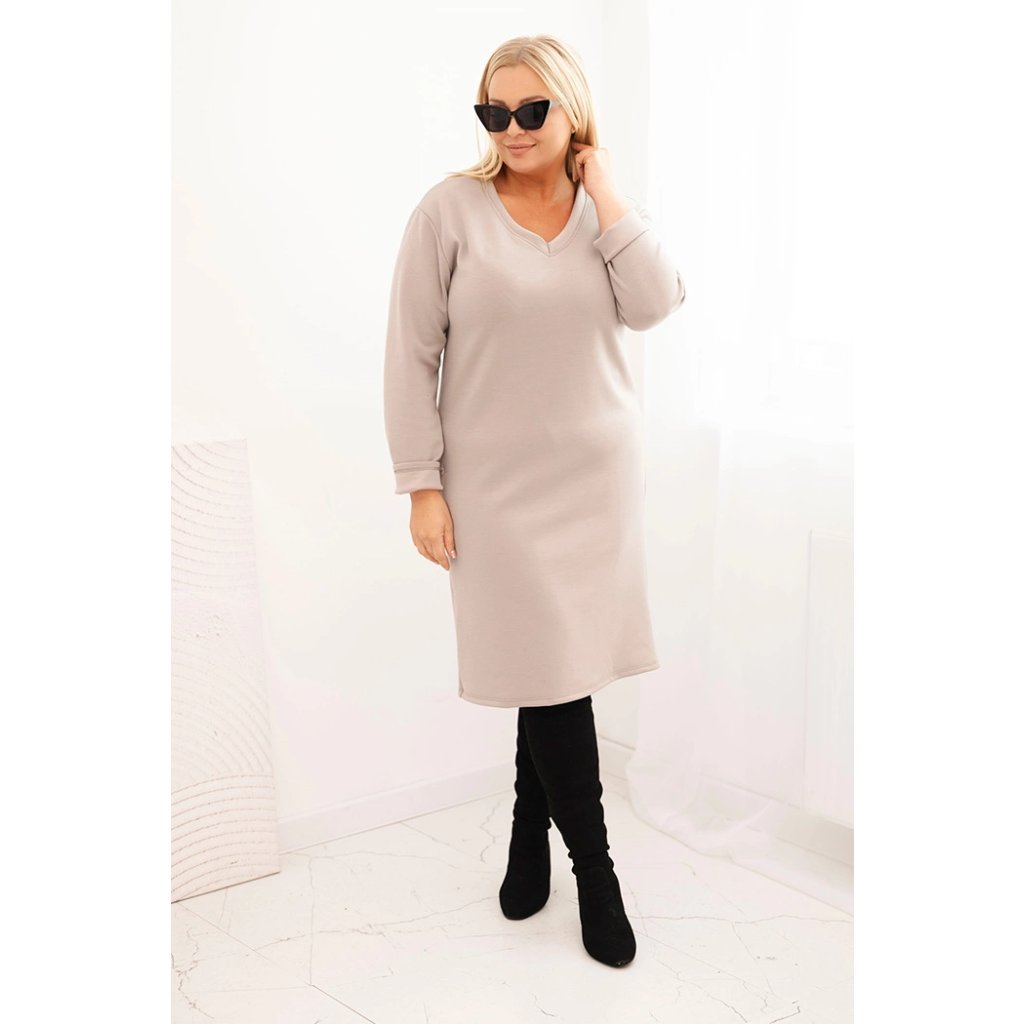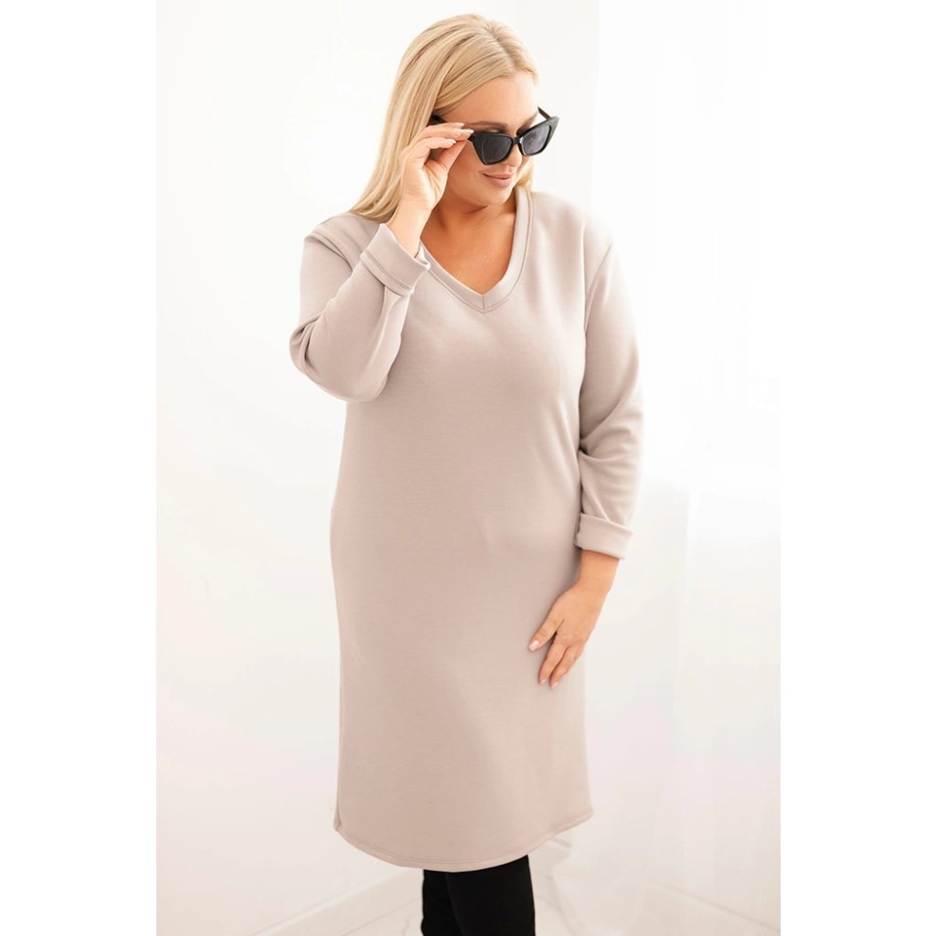Dámske šaty Plus Size maslové s výstrihom do V a rukávom