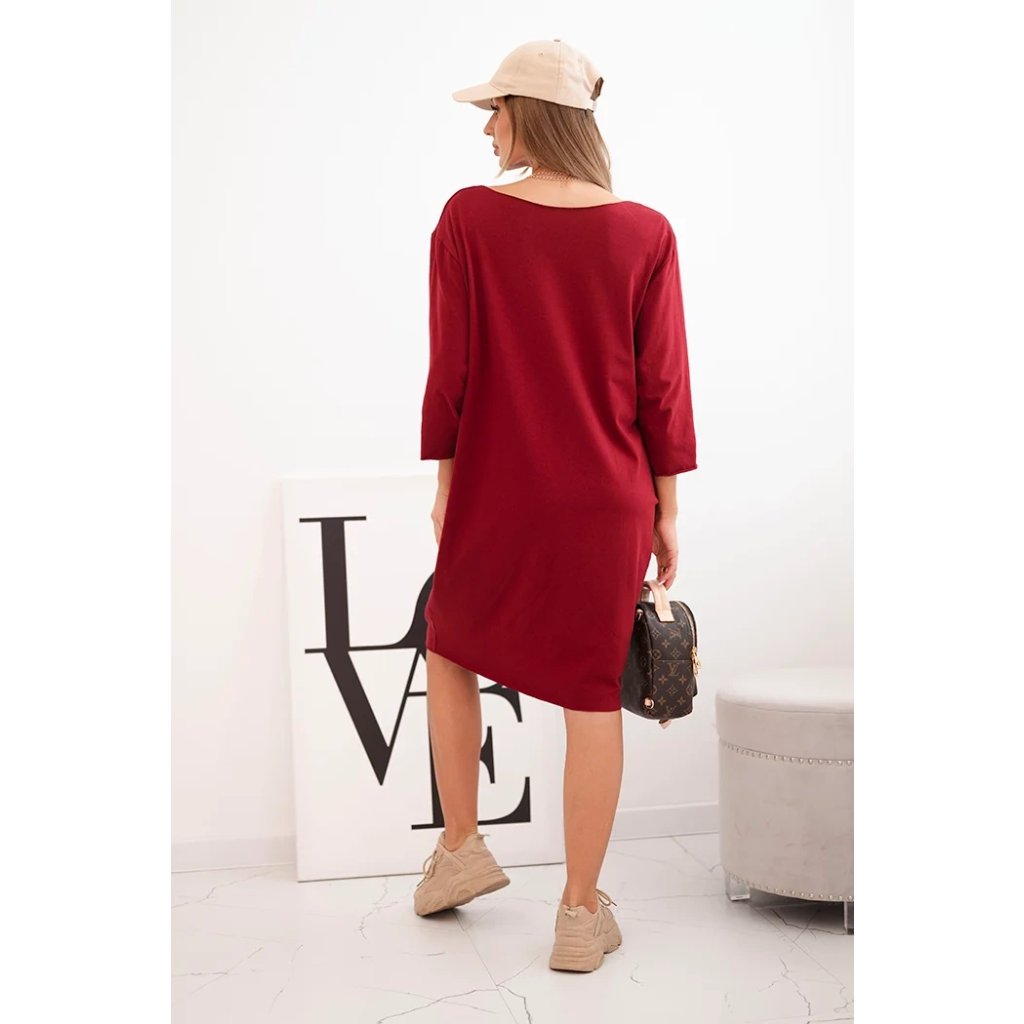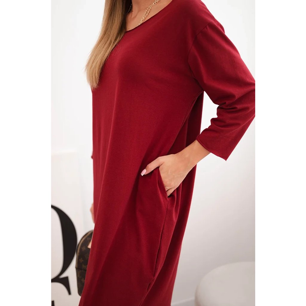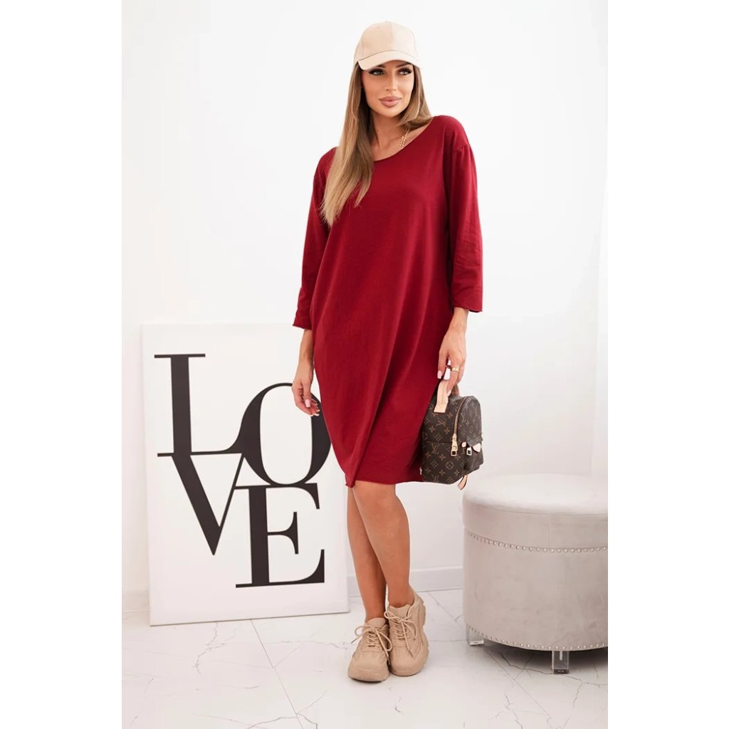 Dámske šaty Plus Size z bavlny s jednoduchým strihom a rukávom 3/4 bordové