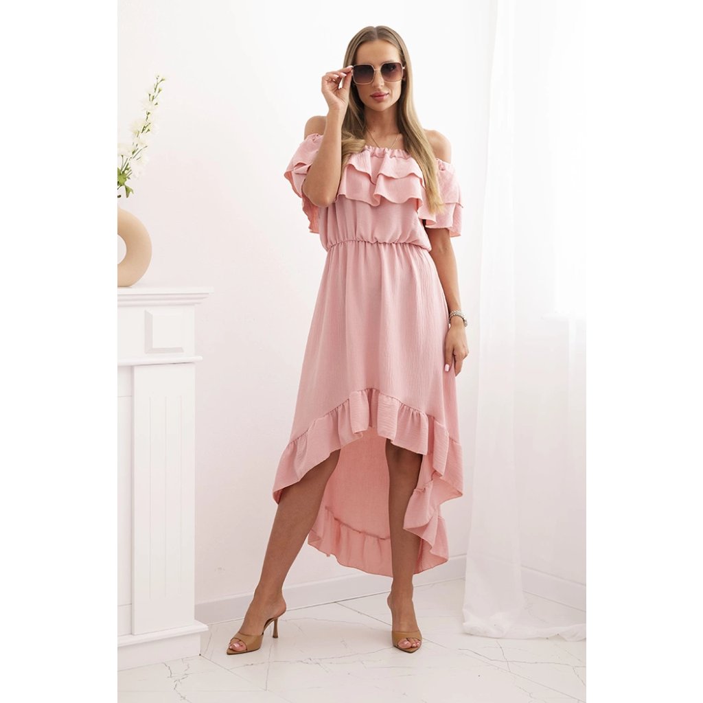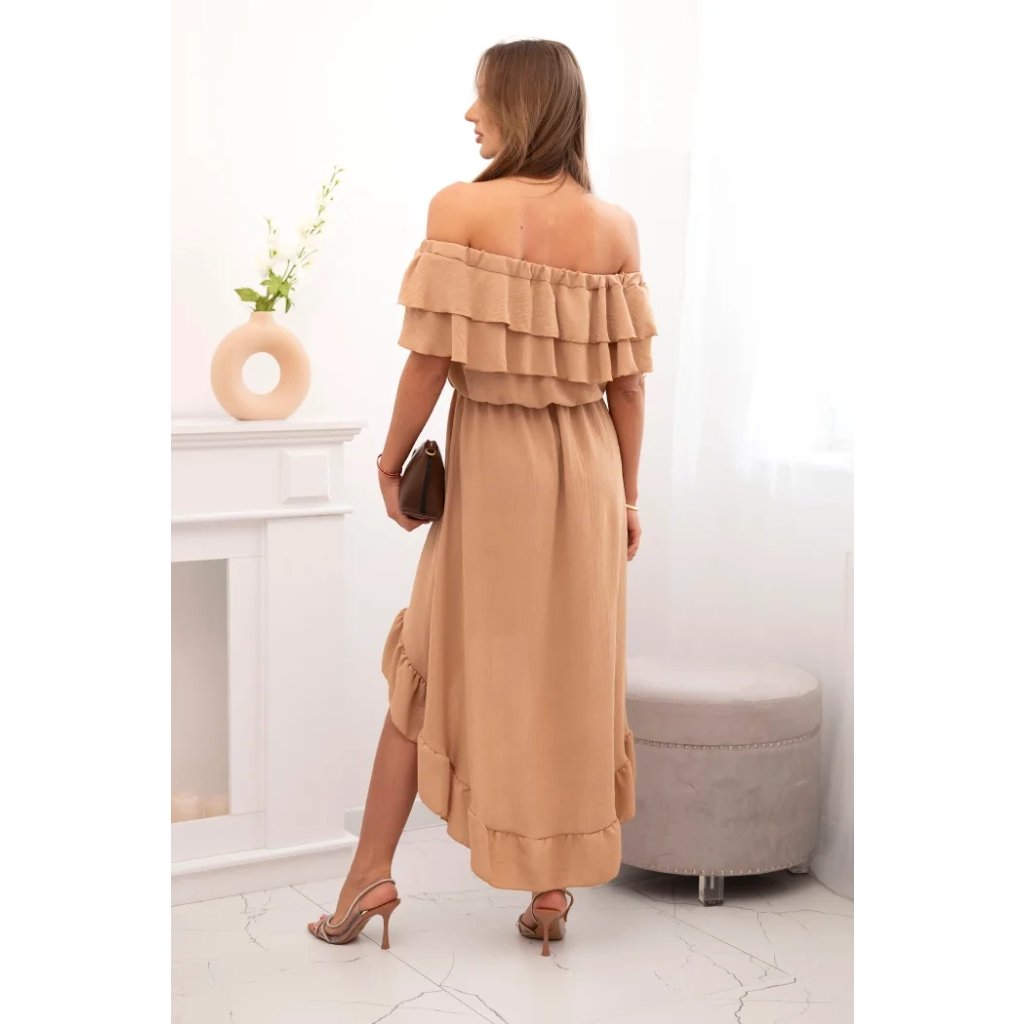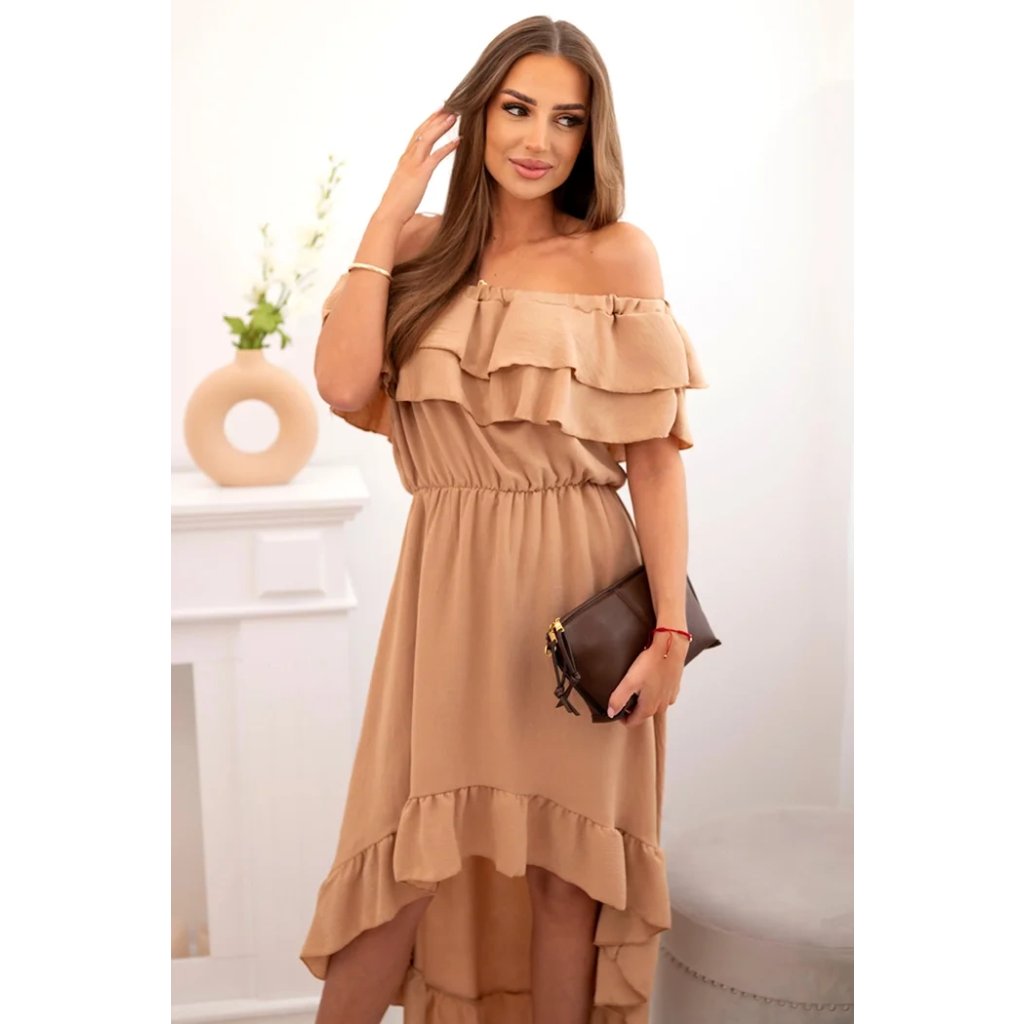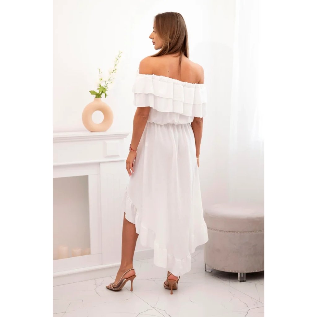 Dámske šaty s odhalenými ramenami a predĺženou zadnou časťou