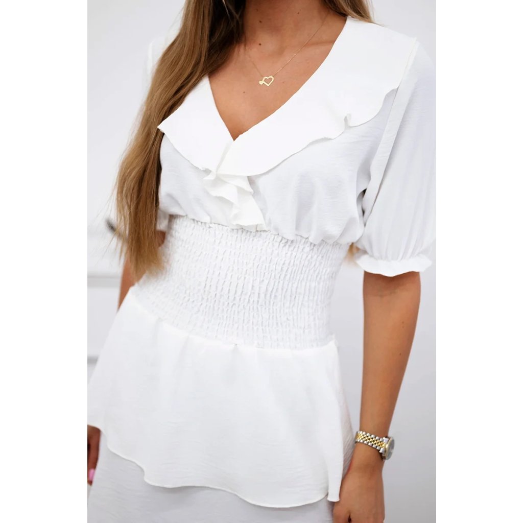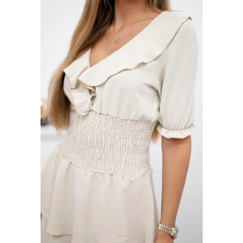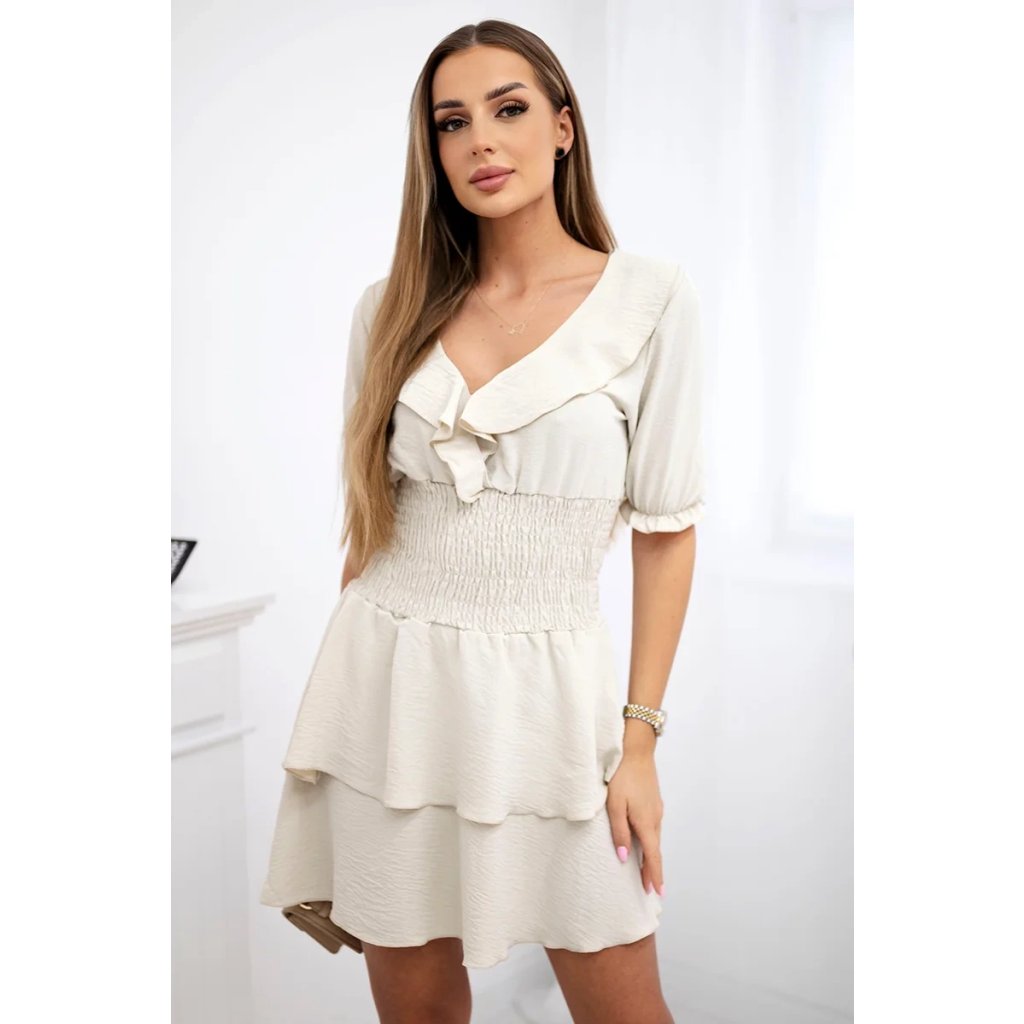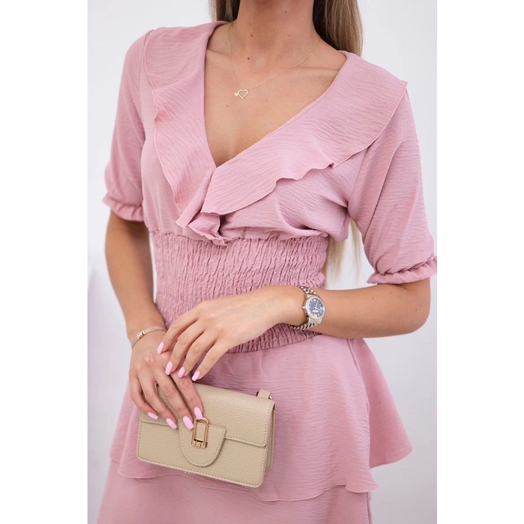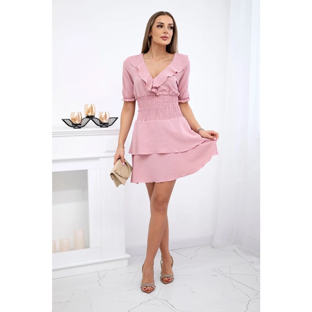 Predstavujeme vám módne šaty. Šaty do pása s výstrihom do V a volánmi. Šaty sú vyrobené z kvalitného materiálu. Ideálne na letné dni.