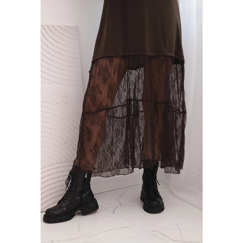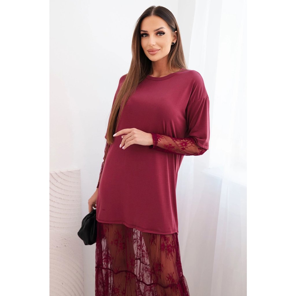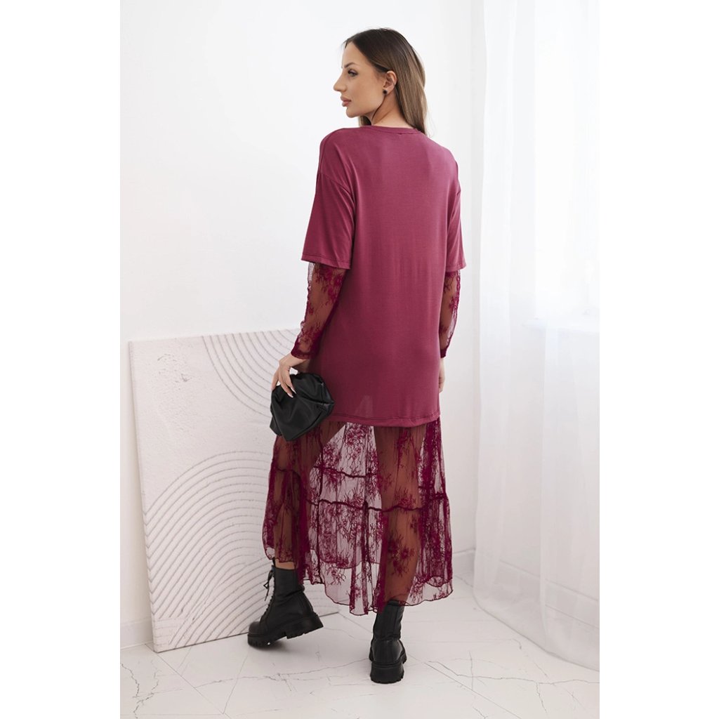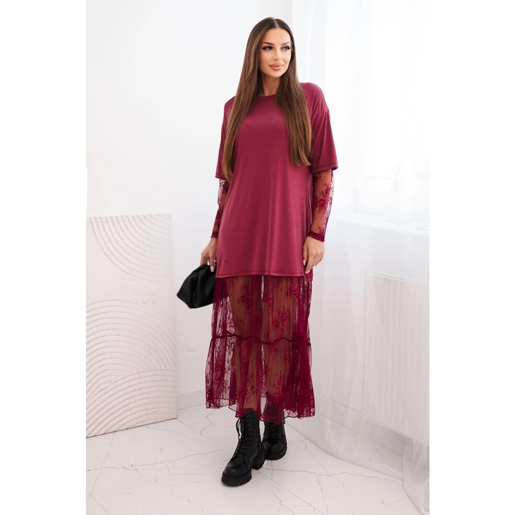 Tieto dámske šaty s tylom v spodnej časti a rukávoch sú ideálnou voľbou pre ženy, ktoré sa rady odlišujú štýlovým a zároveň pohodlným oblečením. Vrchná časť je vyrobená z mäkkého modalového materiálu, ktorý zaisťuje pohodlie pri nosení, a mierne oversize strih zaručuje voľnosť pohybu. Naopak mierne priehľadný tyl v spodnej časti a rukávoch dodávajú celku ľahkosť a módny, ženský charakter.