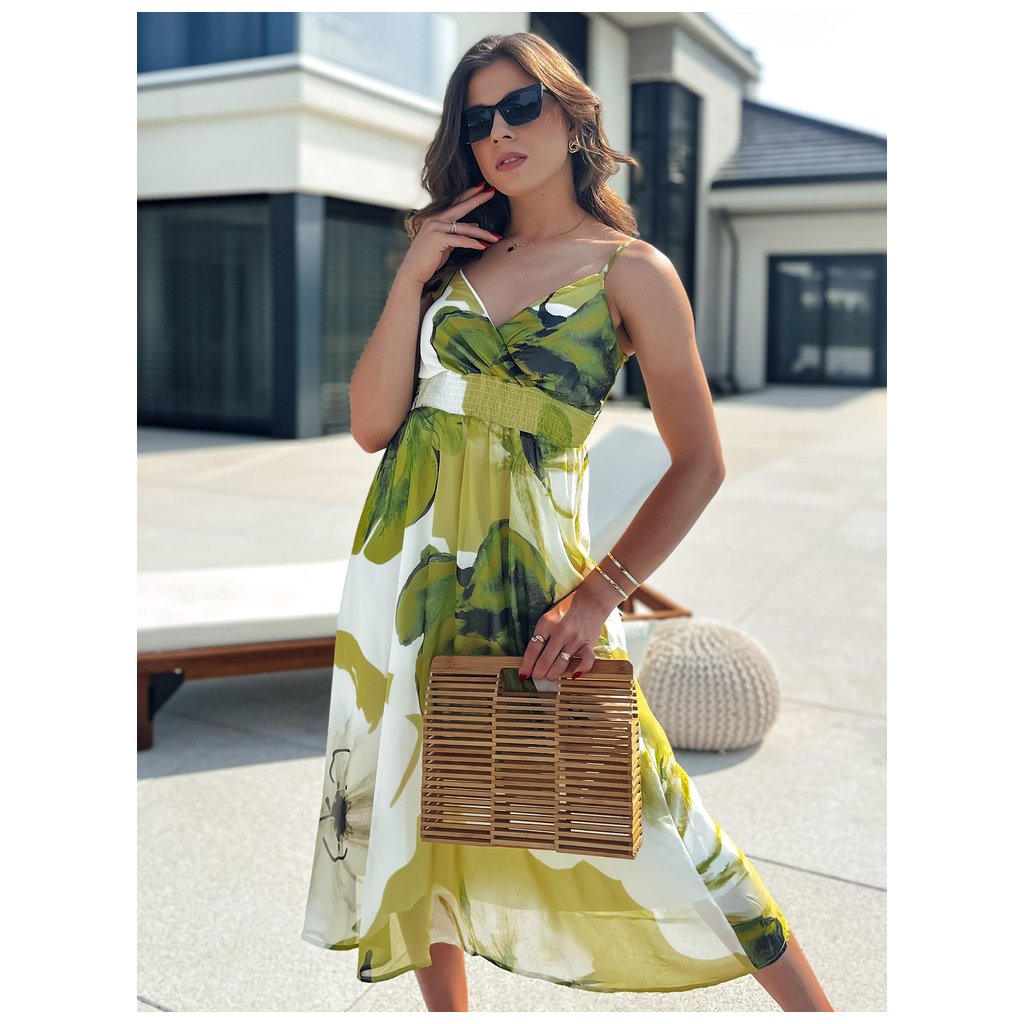 Boho šaty SERENA sú neuveriteľne krásnym kúskom plným farebných vzorov a nevyhnutnosťou vo vašom šatníku. Zavinovací výstrih dokonale zdôrazňuje ženské rysy, zatiaľ čo elastický pás krásne zdôrazňuje siluetu. Dĺžka midi týchto šiat je ideálna pre milovníčky midi strihov a dodáva im jedinečné čaro. Šaty majú nastaviteľné ramienka a podšívku pre maximálne pohodlie. Sú ideálne ako na väčšie akcie, tak aj na každodenné stretnutia. Pridajte si tieto jedinečné šaty do svojej zbierky a užívajte si ich krásu každý deň!