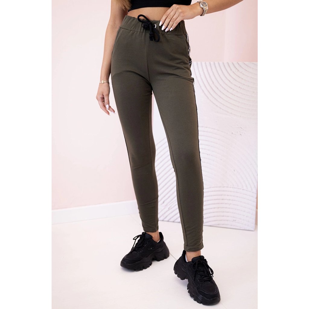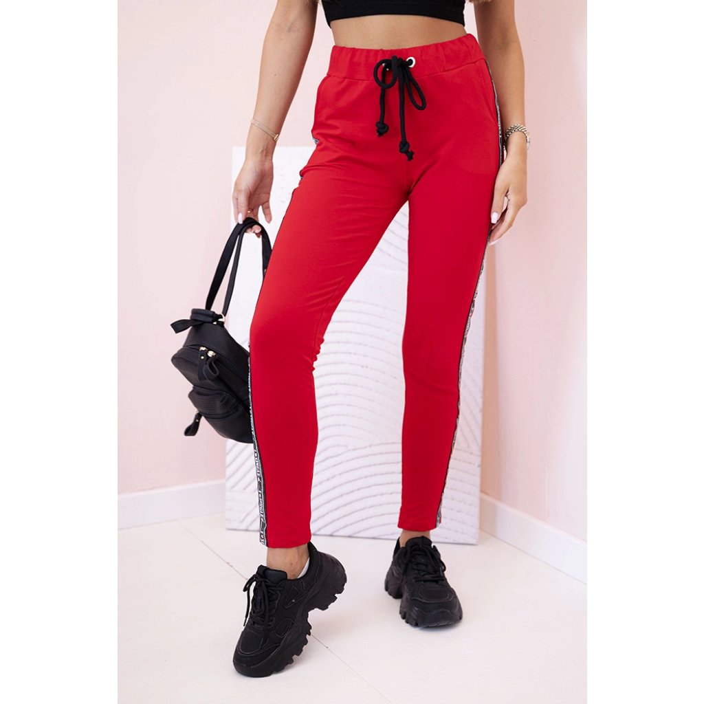 Dámske tepláky 67221 s lampasom a šnúrkou v páse