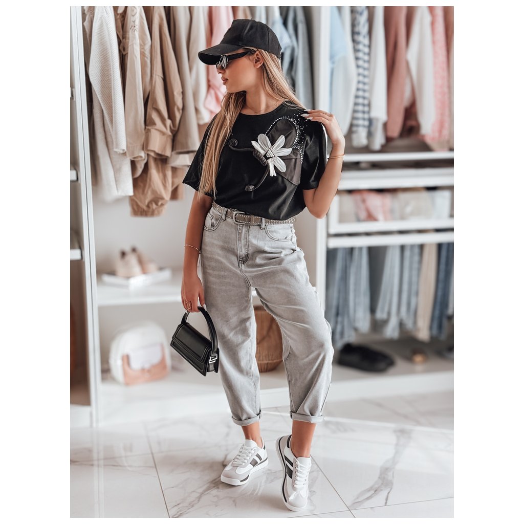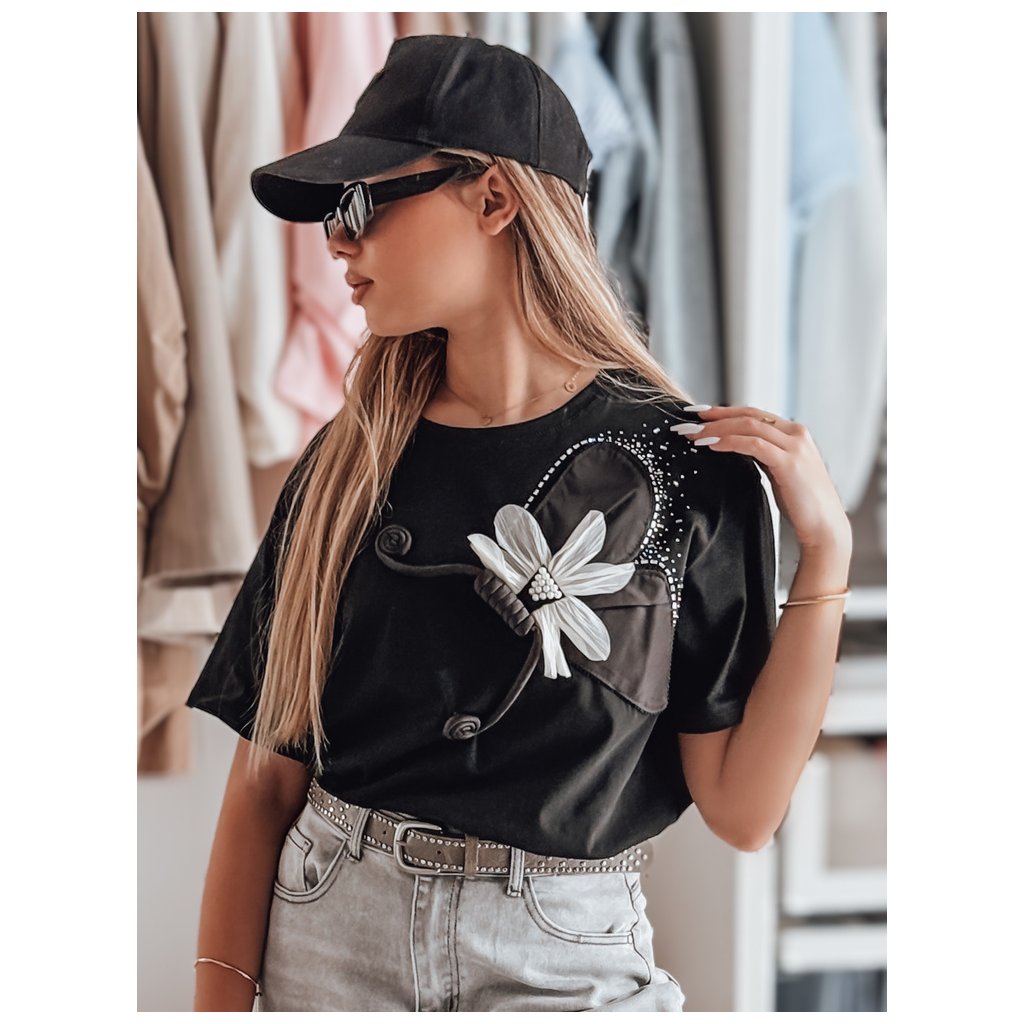 Dámske oversized tričko s 3D motýlím efektom a perleťovými ozdobami. Voľný strih zaisťuje pohodlie, zatiaľ čo jedinečný dizajn dodáva charakter každému outfitu. Perfektná voľba pre tie, ktoré oceňujú originálne detaily a módne akcenty. Hodí sa ako k každodennému, tak aj k ležérnejšiemu oblečeniu.