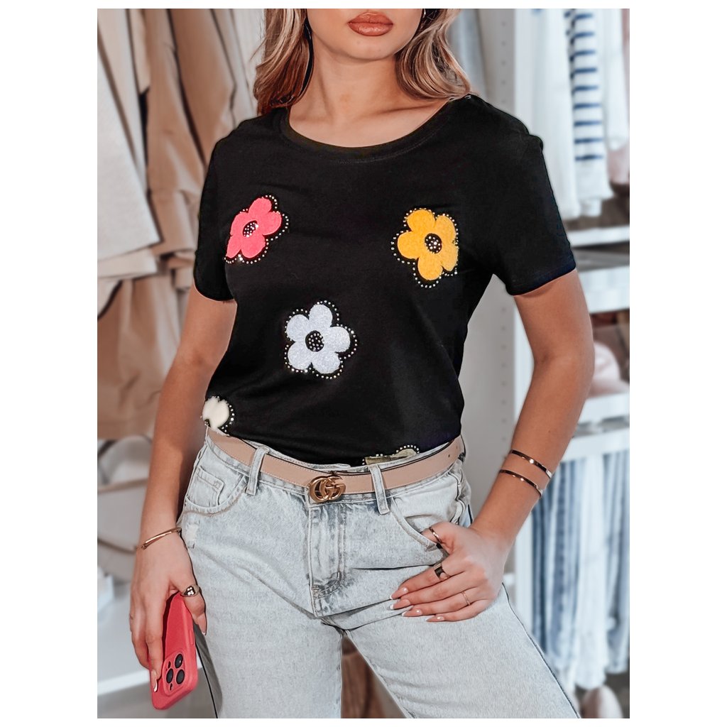 Toto jemné dámske tričko sa vyznačuje očarujúcou kvetinovou potlačou s 3D efektom. Kamienky okolo vzoru dodávajú jemný trbliet a vytvárajú neuveriteľne ženský efekt. Klasický strih s krátkymi rukávmi a okrúhlym výstrihom z neho robí perfektnú voľbu na každodenné nosenie aj ležérne outfity.