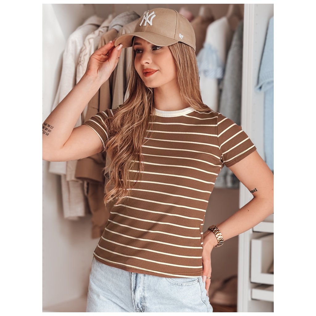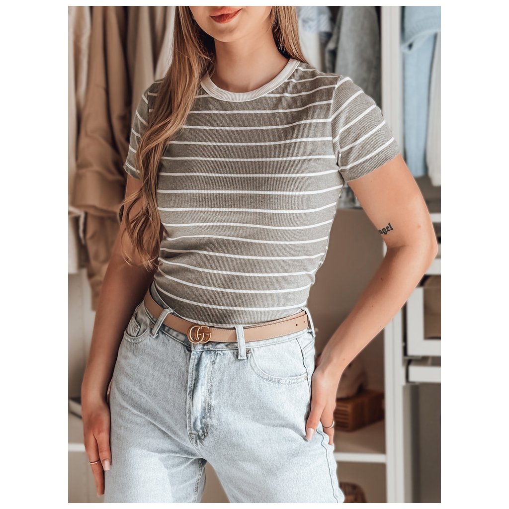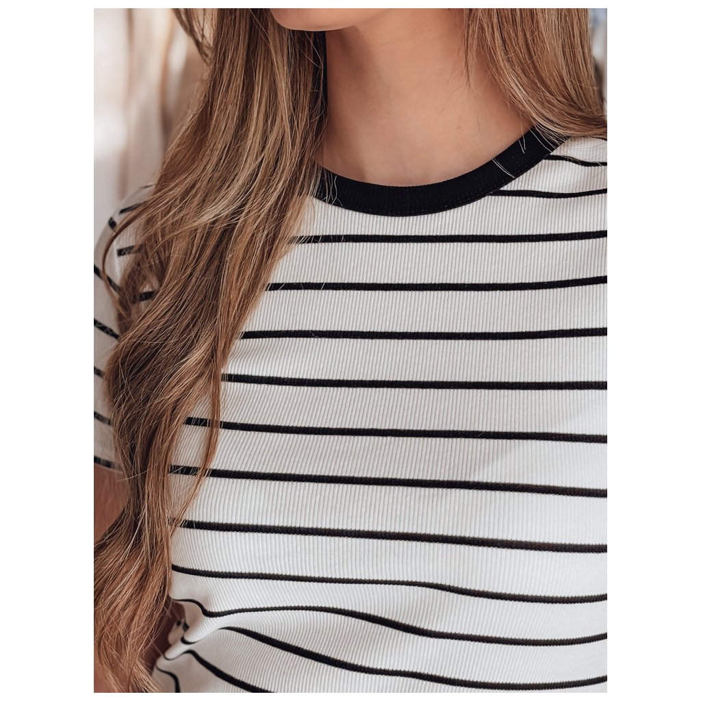 Toto priliehavé pruhované tričko je nevyhnutnosťou v každom šatníku! Vyrobené z elastickej rebrovanej látky pre pohodlie a skvelý strih. Krátke rukávy a klasický strih ho robia perfektným k džínsom a teniskám.