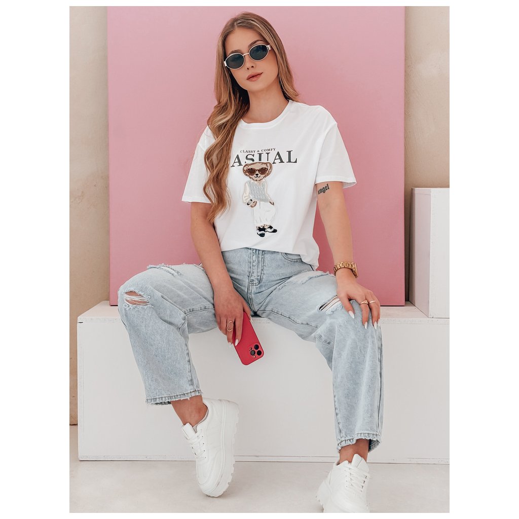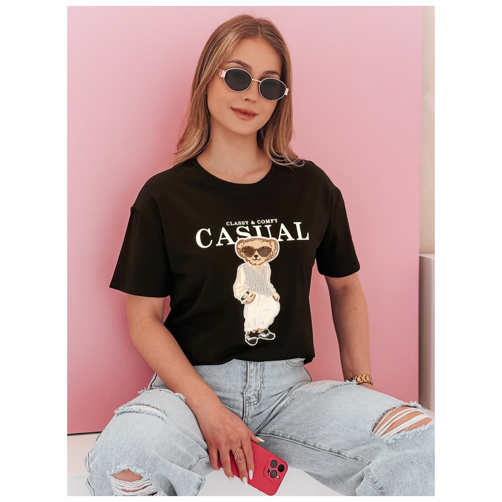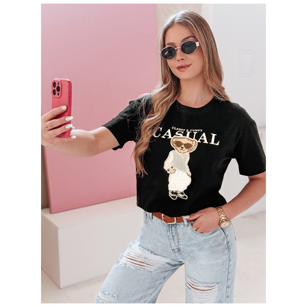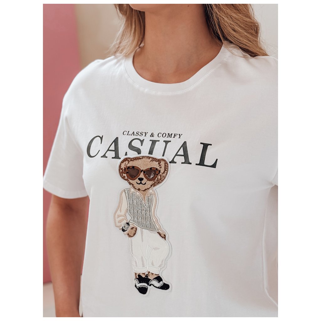 Toto dámske tričko s rozkošnou aplikáciou medvedíka a sloganom „CLASSY & COMFY CASUAL“ v sebe spája štýl a pohodlie. Je vyrobené z mäkkej látky a je ideálne na každodenné nosenie. Voľný strih a hravé detaily pútavo upútajú pozornosť, vďaka čomu je tento kúsok skvelou voľbou na jarné dni.