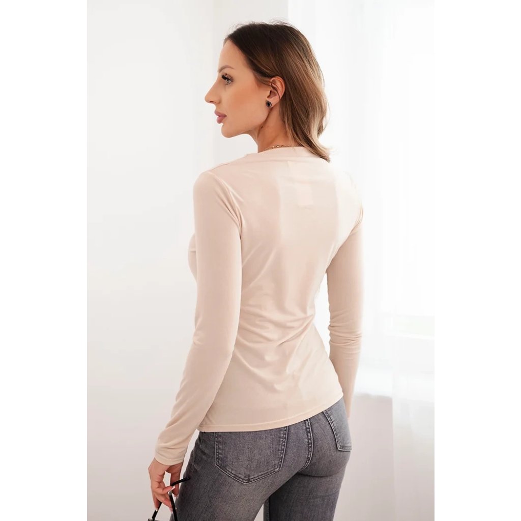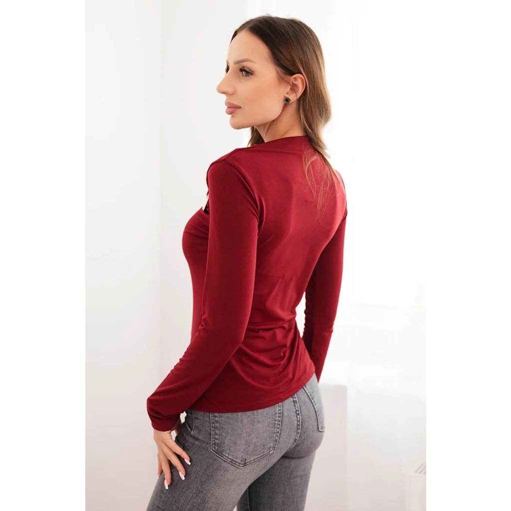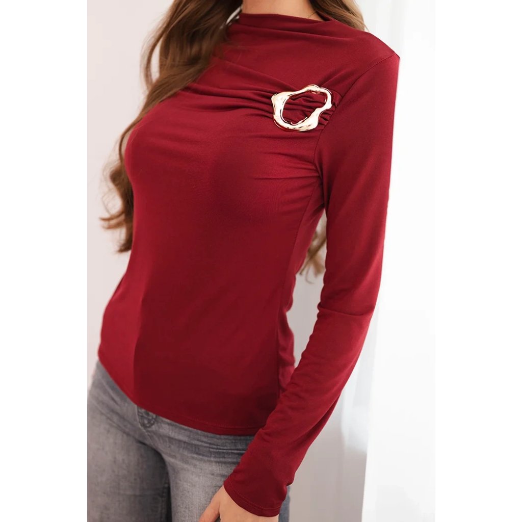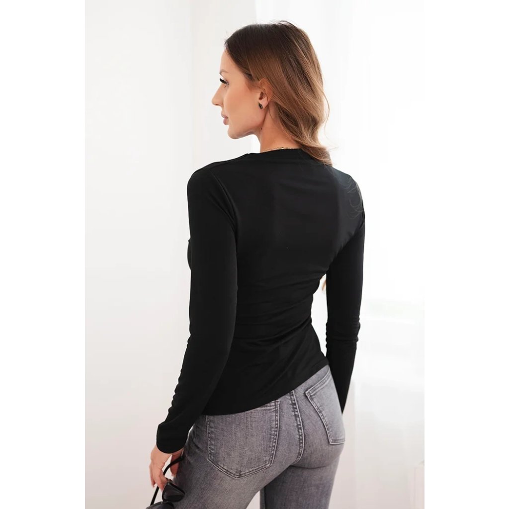 Elegantná dámska blúzka s ozdobnou sponou na ramene je ideálnym návrhom na výnimočné príležitosti aj štýlové každodenné outfity. Model sa vyznačuje jemným nariasením, ktoré podčiarkuje siluetu, a príjemným na dotyk materiálom s prídavkom viskózy. Priliehavý strih a elastická tkanina zaisťujú komfort nosenia a voľnosť pohybu. Skvele vyzerá ako so sukňou, tak s elegantnými nohavicami.