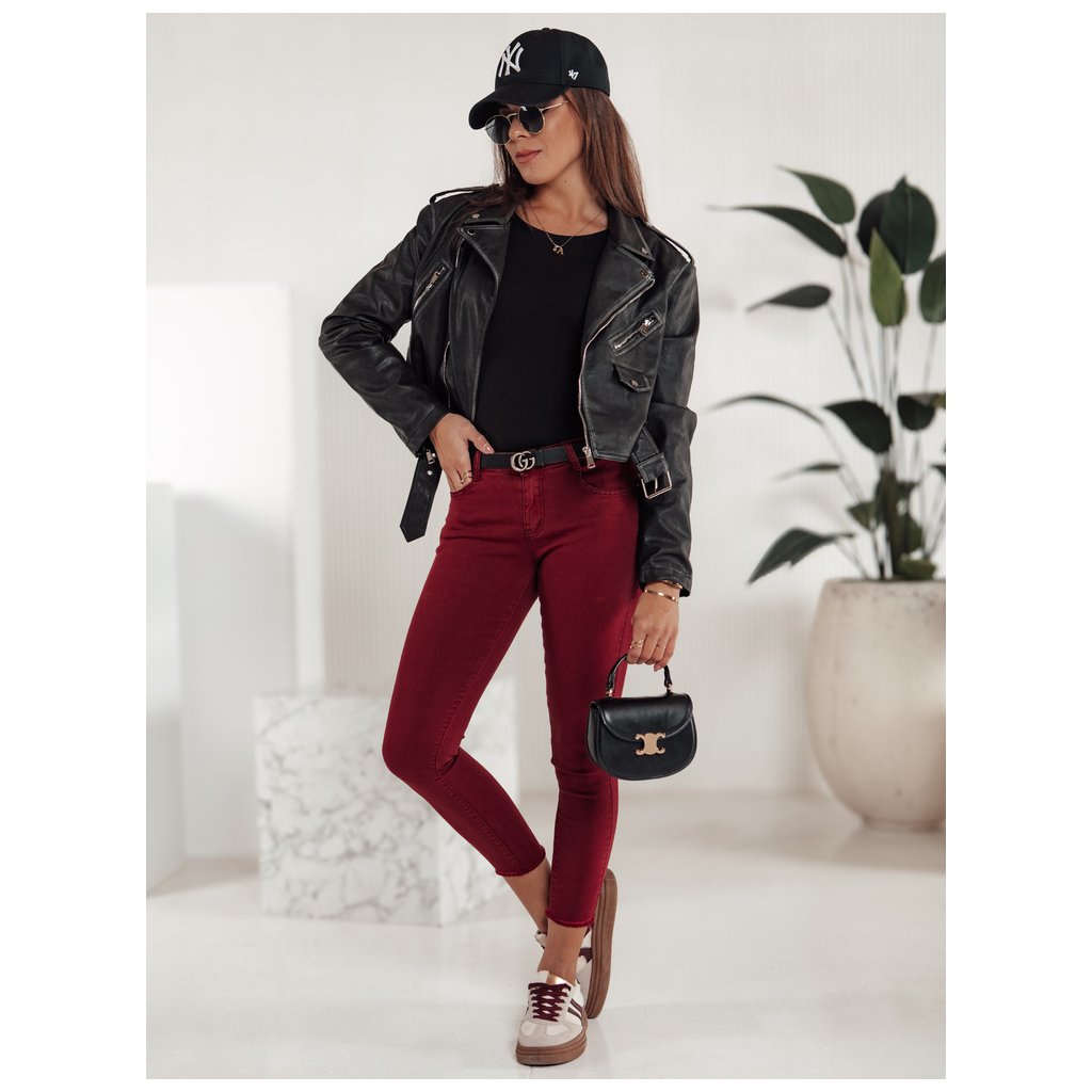 Dámske úzke džínsy BRITTNIX vínovej farby Dstreet UY2222
