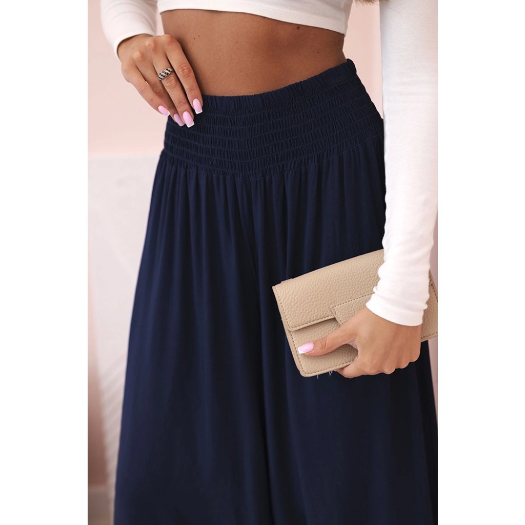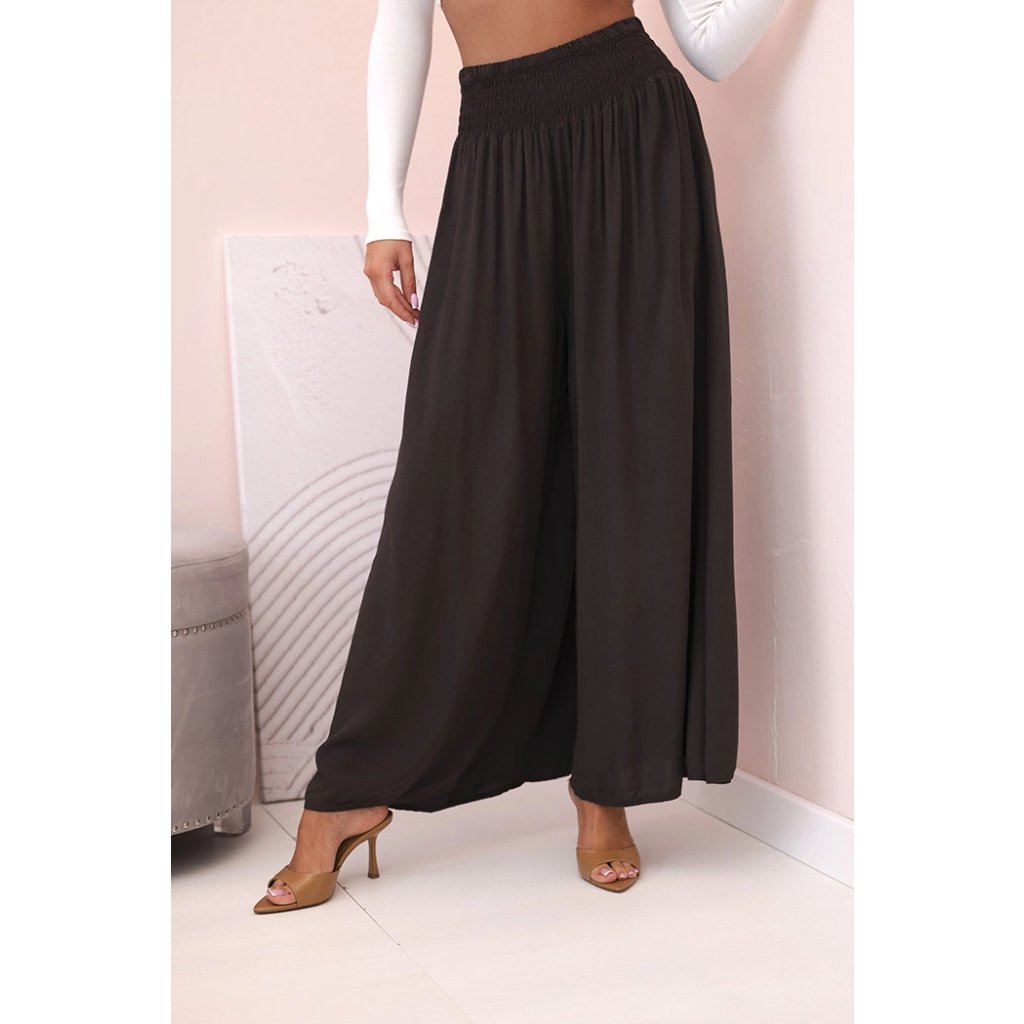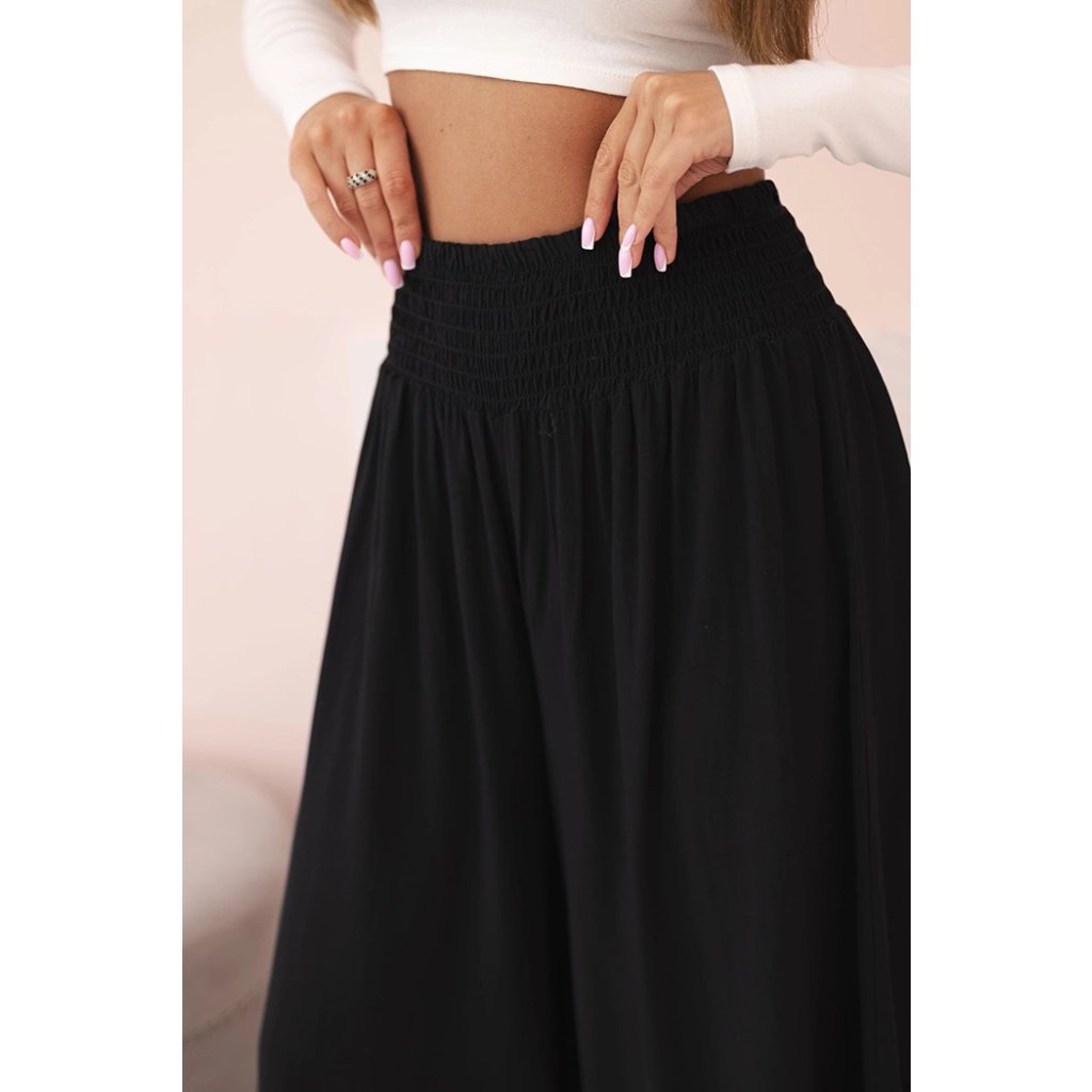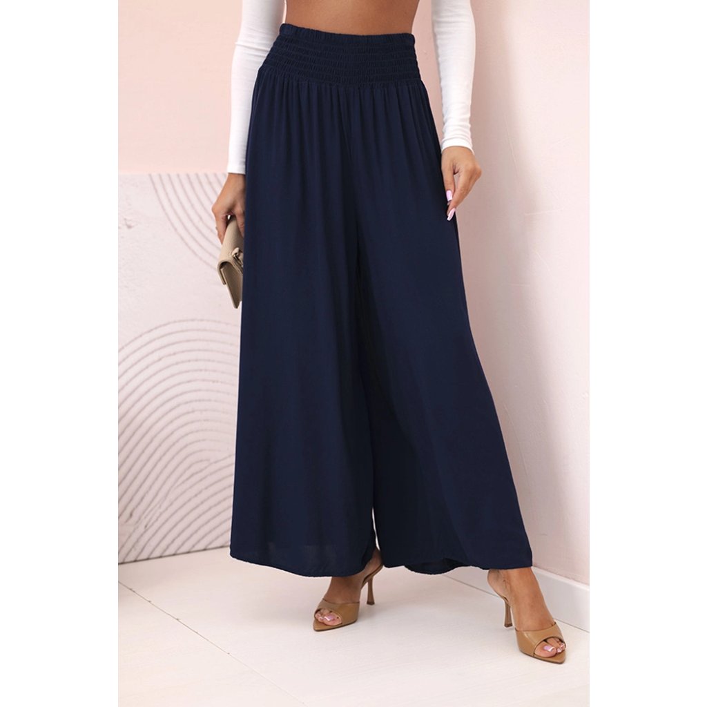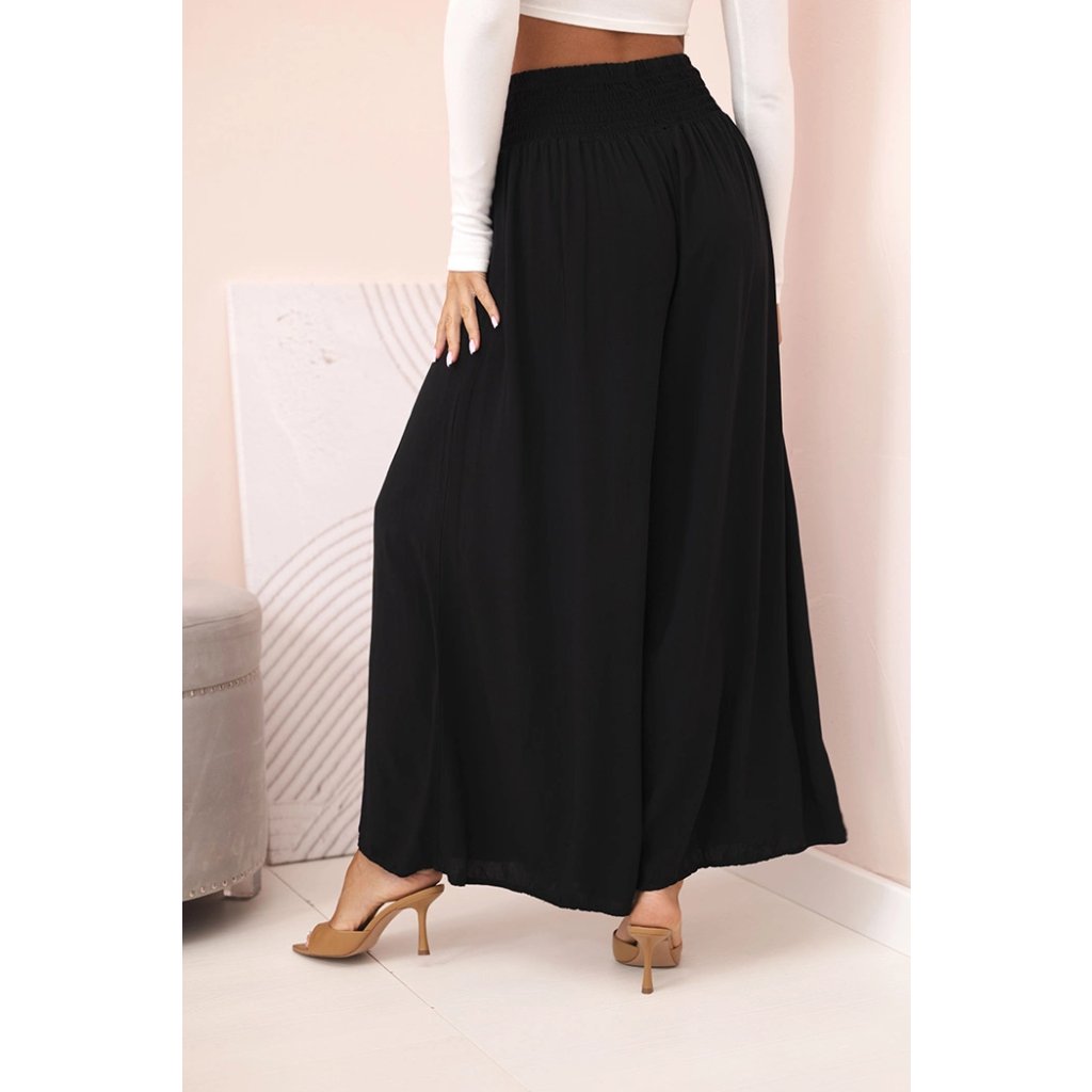 Ak hľadáte pohodlné a štýlové nohavice na každý deň alebo na dovolenku, tieto dámske palazzo nohavice sú trefou do čierneho! Vyrobené zo 100% ľahkej, vzdušnej viskózy poskytujú nielen komfort pri nosení, ale aj krásne padnú na postavu. Široké nohavice a rozšírený strih dodávajú každému pohybu ľahkosť a eleganciu a elastický pás sa skvele prispôsobí pásu. Ideálne na prechádzku, nákupy aj na pláž – stačí pridať jednoduchý top a je to! Univerzálny model, ktorý by nemal chýbať vo vašom šatníku. Veľkosť je univerzálna a hodí sa pre ženy veľkosti S, M alebo L.