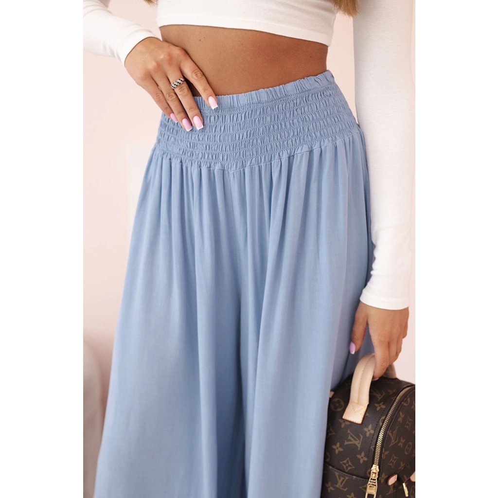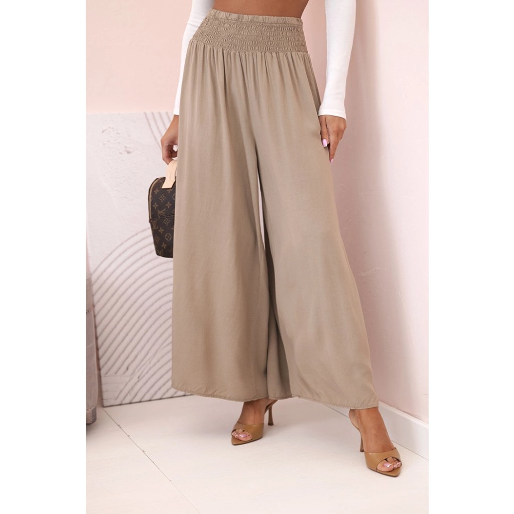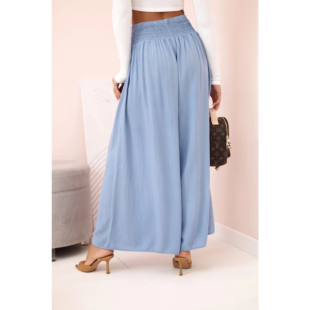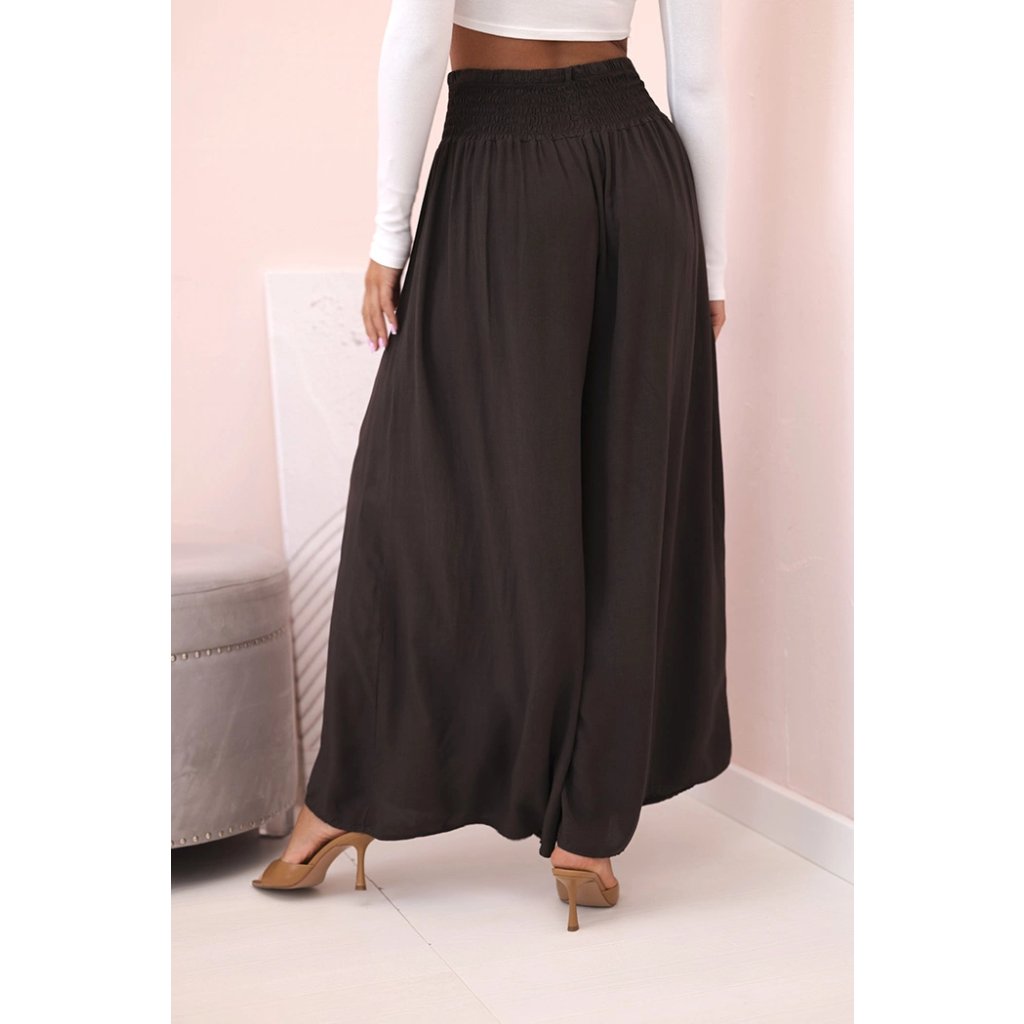 Ak hľadáte pohodlné a štýlové nohavice na každý deň alebo na dovolenku, tieto dámske palazzo nohavice sú trefou do čierneho! Vyrobené zo 100% ľahkej, vzdušnej viskózy poskytujú nielen komfort pri nosení, ale aj krásne padnú na postavu. Široké nohavice a rozšírený strih dodávajú každému pohybu ľahkosť a eleganciu a elastický pás sa skvele prispôsobí pásu. Ideálne na prechádzku, nákupy aj na pláž – stačí pridať jednoduchý top a je to! Univerzálny model, ktorý by nemal chýbať vo vašom šatníku. Veľkosť je univerzálna a hodí sa pre ženy veľkosti S, M alebo L.