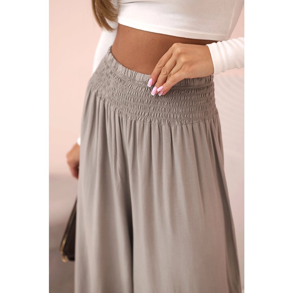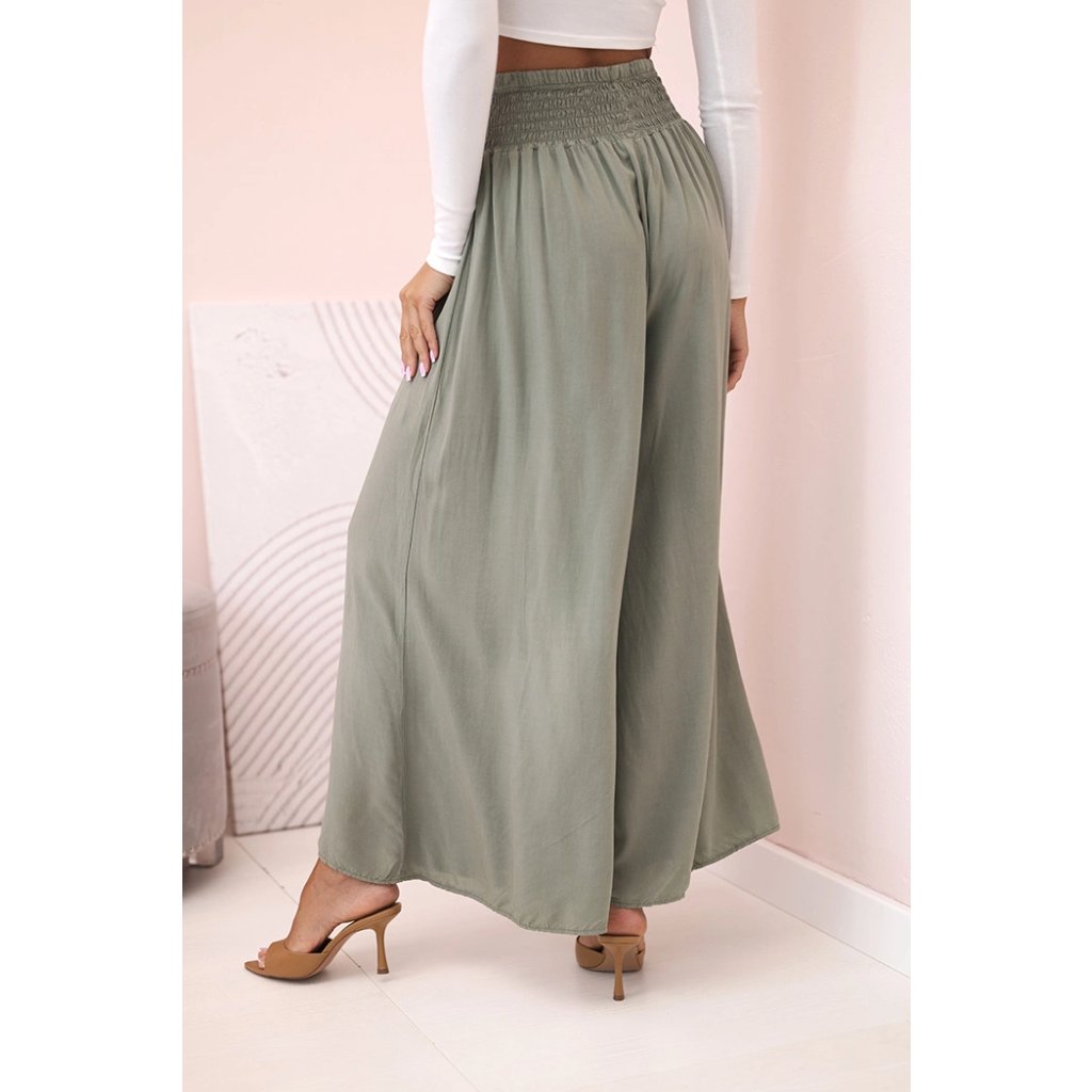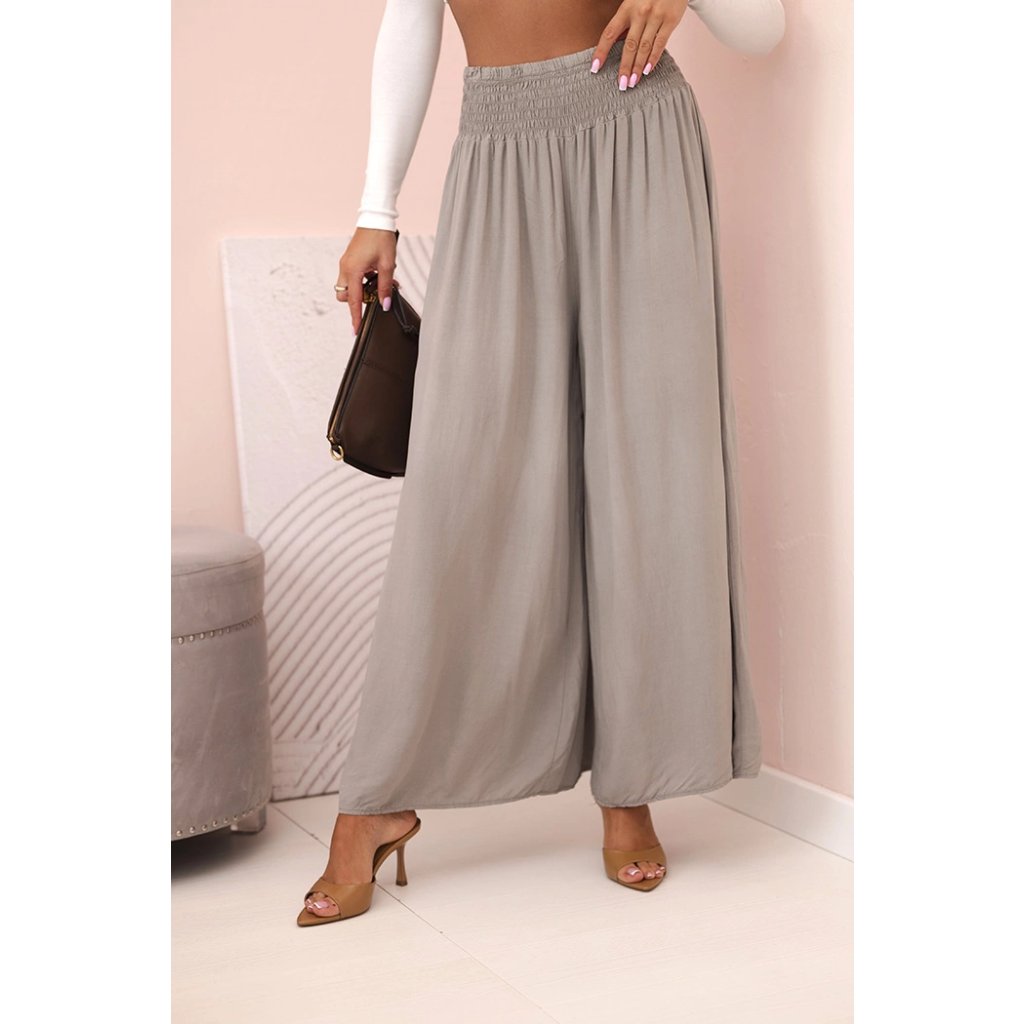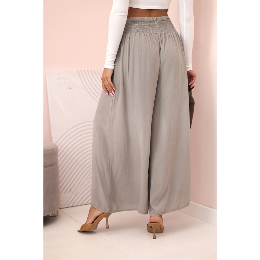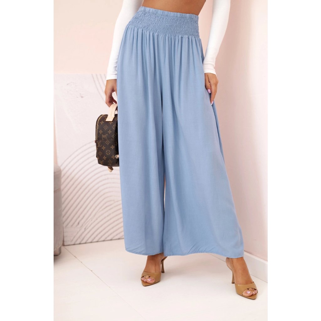 Ak hľadáte pohodlné a štýlové nohavice na každý deň alebo na dovolenku, tieto dámske palazzo nohavice sú trefou do čierneho! Vyrobené zo 100% ľahkej, vzdušnej viskózy poskytujú nielen komfort pri nosení, ale aj krásne padnú na postavu. Široké nohavice a rozšírený strih dodávajú každému pohybu ľahkosť a eleganciu a elastický pás sa skvele prispôsobí pásu. Ideálne na prechádzku, nákupy aj na pláž – stačí pridať jednoduchý top a je to! Univerzálny model, ktorý by nemal chýbať vo vašom šatníku. Veľkosť je univerzálna a hodí sa pre ženy veľkosti S, M alebo L.