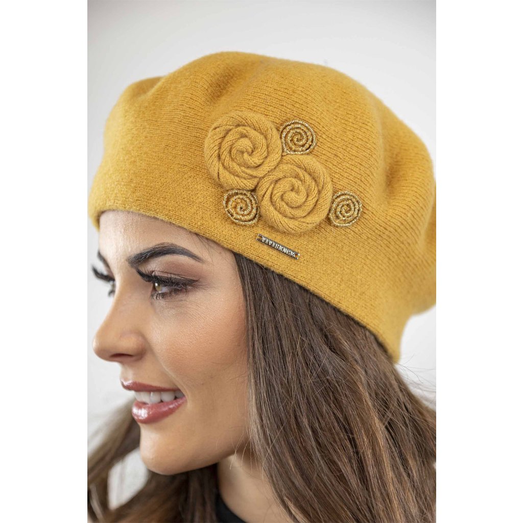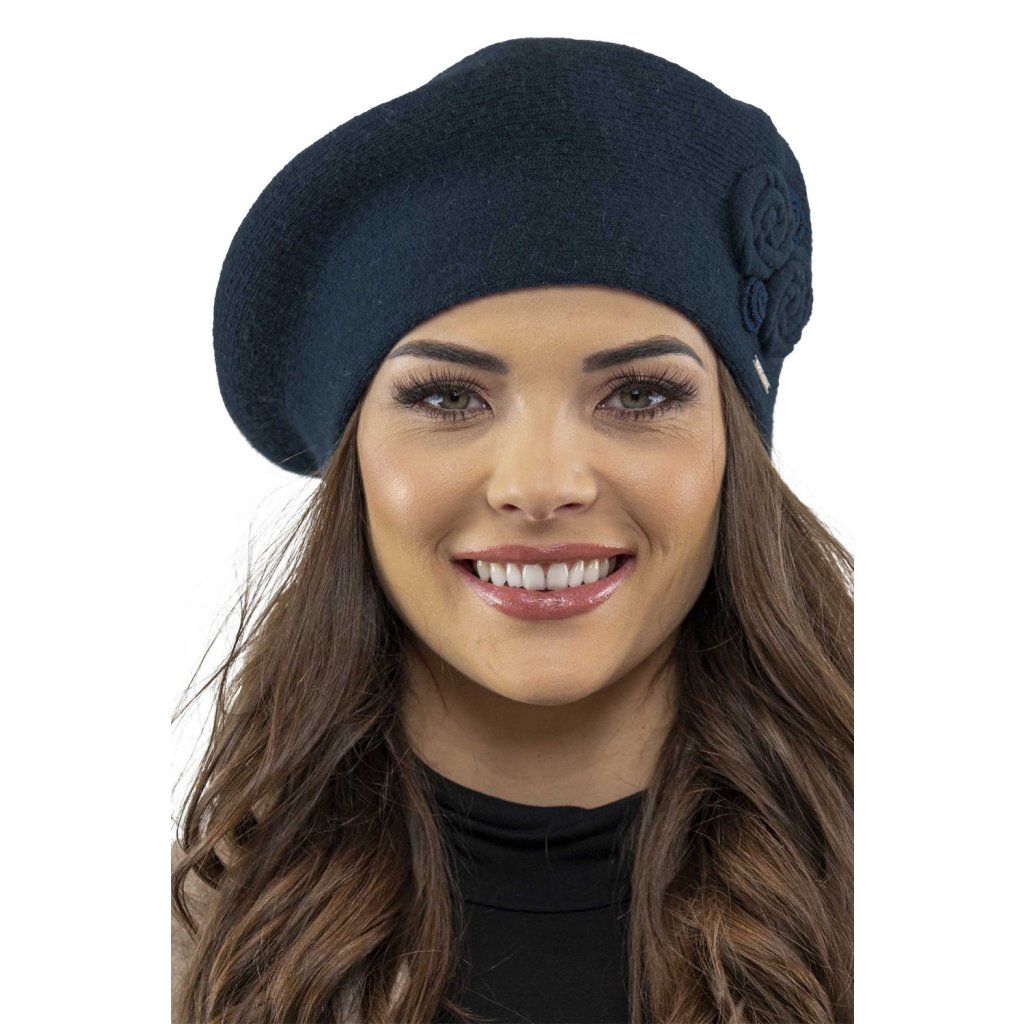 Elegantní dámský baret. - klasický střih - z hřejivé příze s přídavkem vlny - přední strana zdobená aplikací - baret dokonale přiléhá k hlavě - skvělý nápad na dárek Složení: Složení: 80 % vlna, 20 % polyamid.Dodatočné parametre