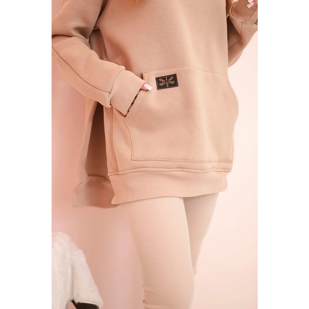 Hľadáte pohodlnú a štýlovú súpravu na každodenné nosenie? Tento dámsky teplákový komplet je ideálnou voľbou pre vás! Mäkká mikina s kapucňou a veľkým klokaním vreckom zaručuje komfort nosenia a voľnosť pohybu. Voľnejší strih mikiny robí, že skvele sedí na postave, a legíny s vysokým pásom dokonale zvýrazňujú ženskú postavu a zaisťujú pohodlie po celý deň.