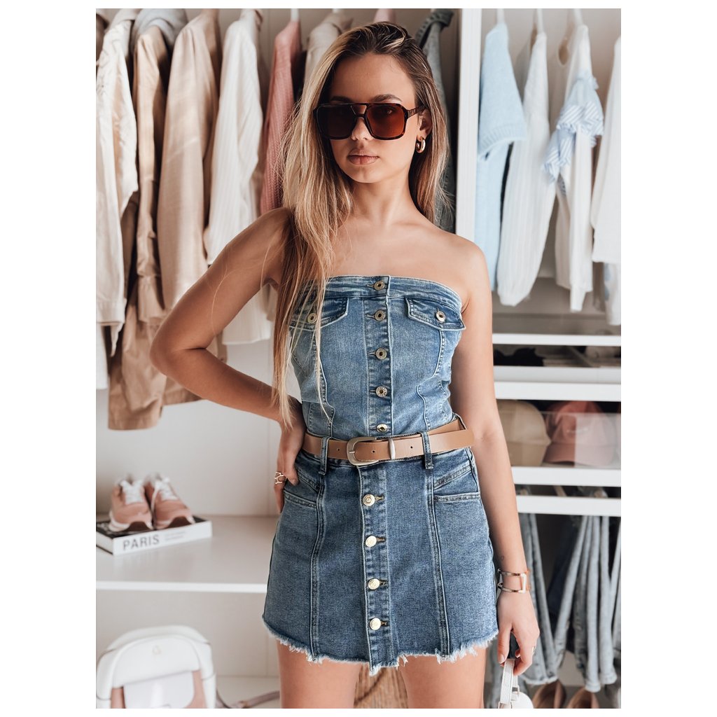 Tento džínsový top bez ramienok zdôrazňuje postavu a dodáva vzhľadu jedinečný charakter. Korzetový strih perfektne sadne a ozdoby ako falošné vrecká a kovové gombíky dodávajú jedinečný vzhľad. Je to perfektná voľba pre každodenné aj večerné outfity v teplejších jarných dňoch.