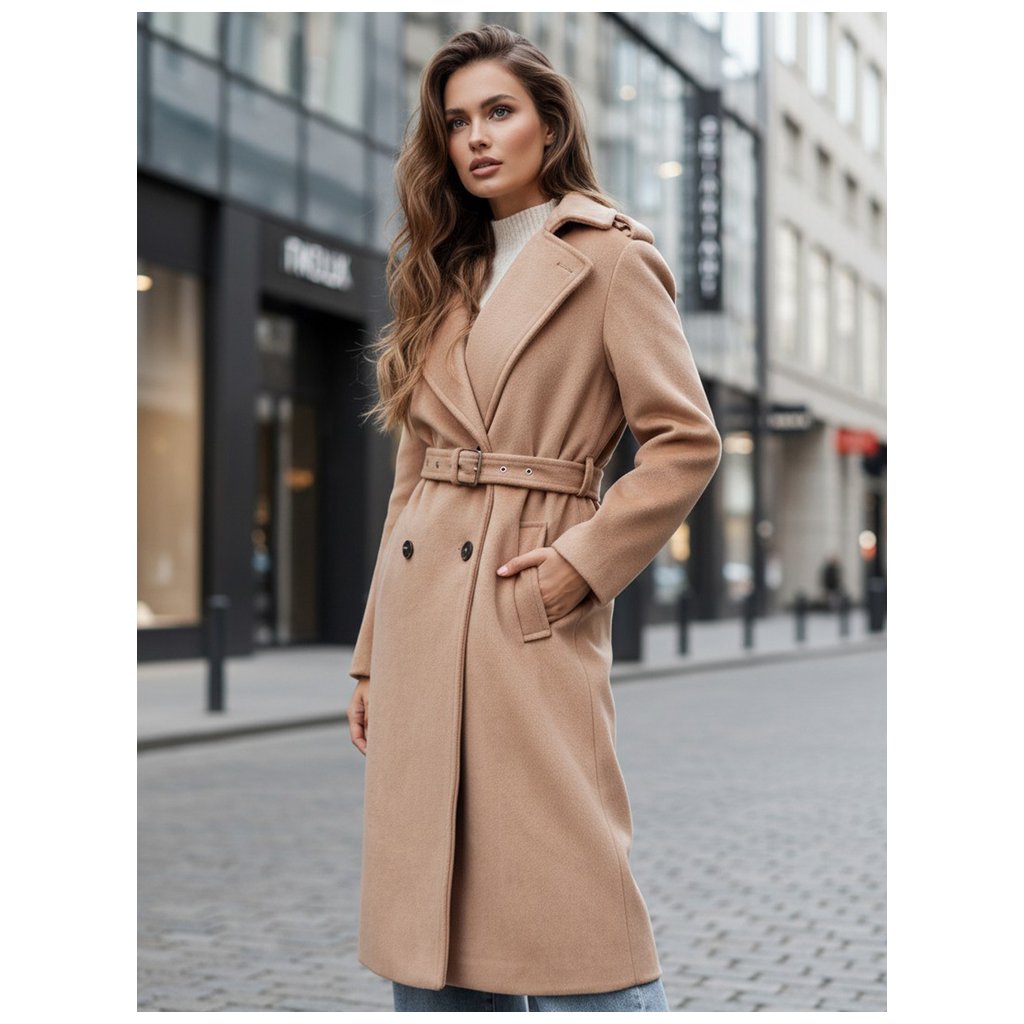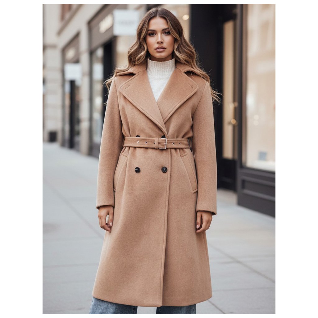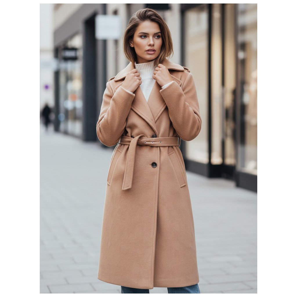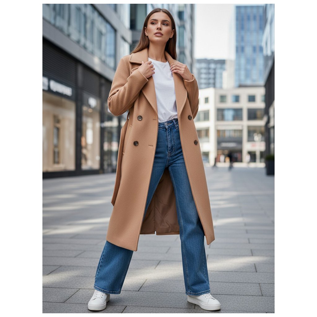 Tento klasický kabát vo farbe ťavy sa perfektne hodí ku čižmám, členkovým čižmám alebo elegantným podpätkom. Je skvelým základom pre jesenný/zimný styling, ktorý kombinuje funkčnosť s eleganciou.