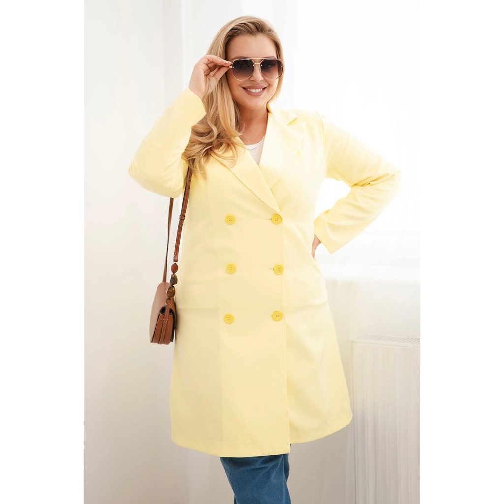 Dámsky kabát Plus Size dvojradový s golierom béžový