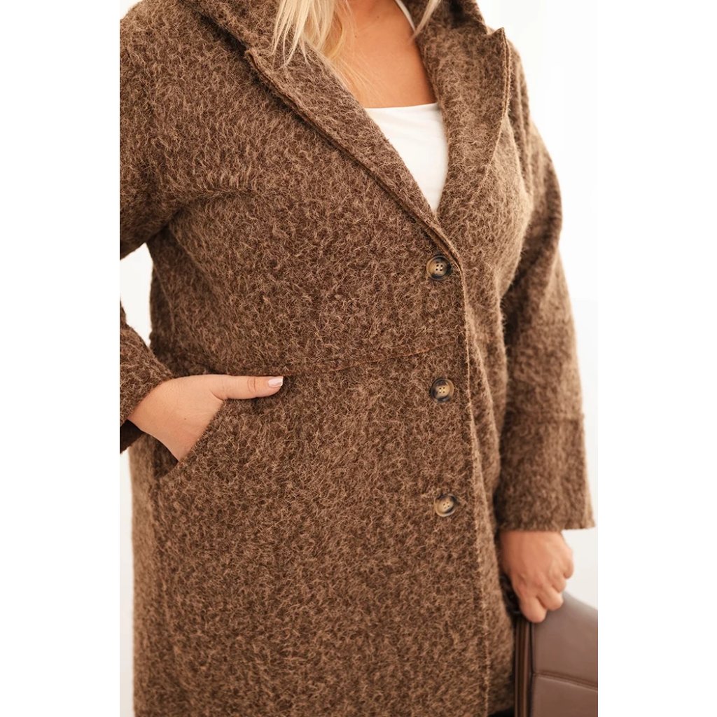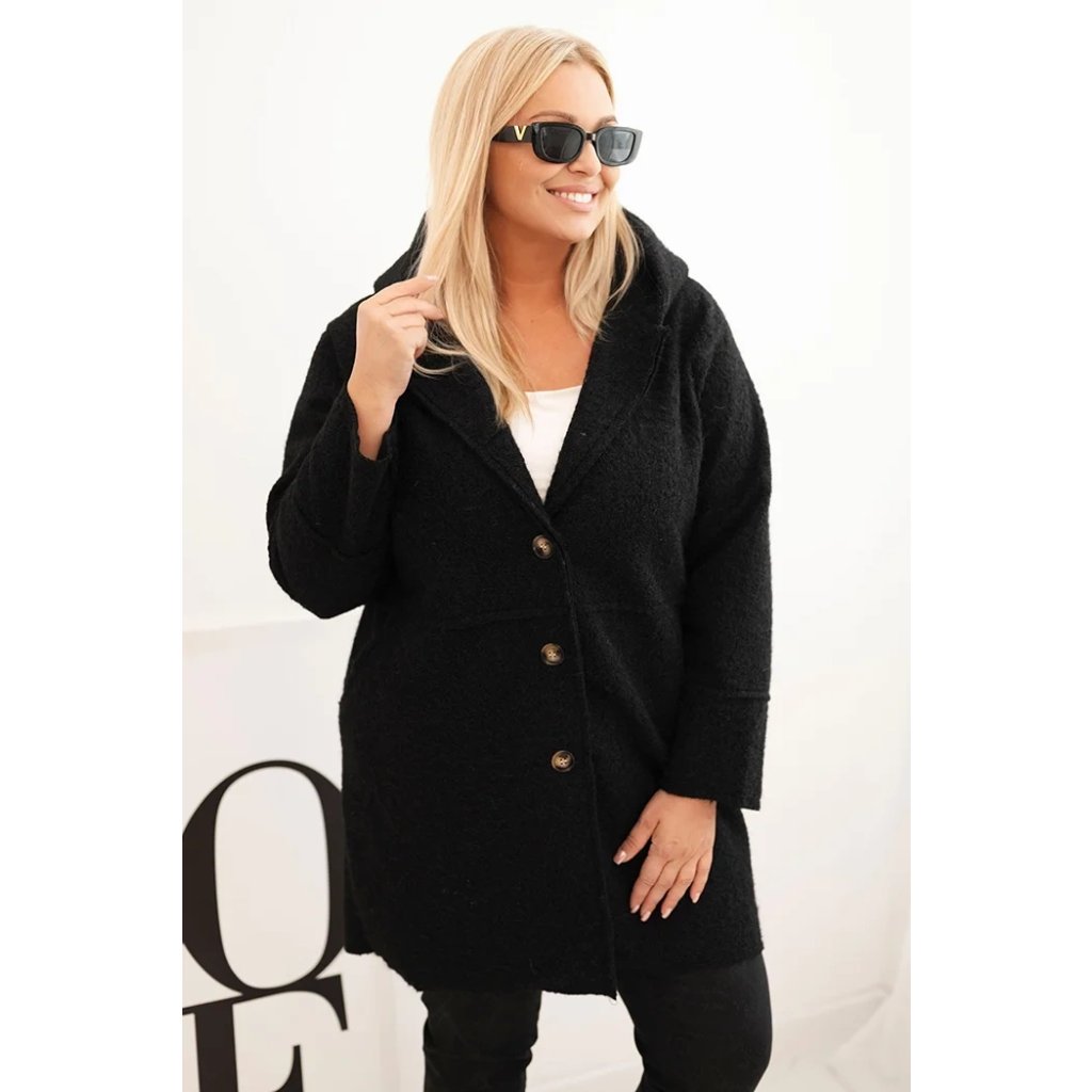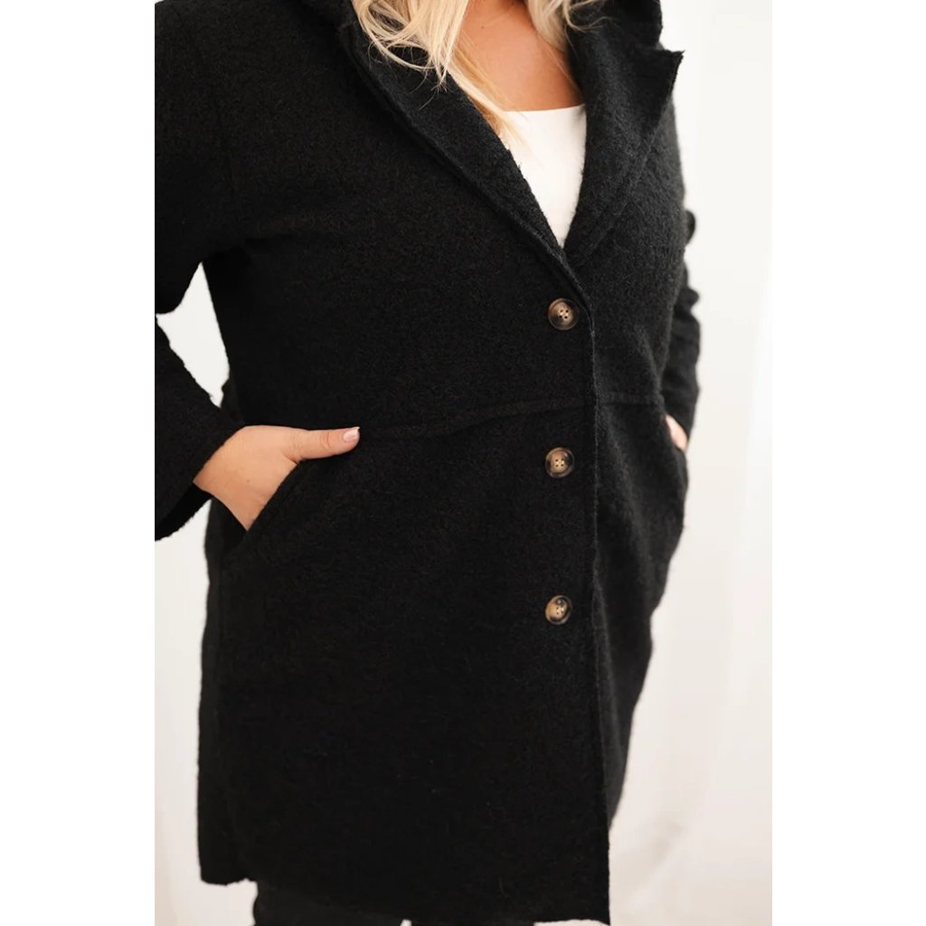 Štýlový dámsky kabát s praktickou kapucňou je ideálnou voľbou na jesennú a zimnú sezónu. Model bol vyrobený z vysoko kvalitného materiálu, ktorý zaisťuje teplo, komfort a pohodlie pri nosení. Zapínanie na veľké gombíky dodáva eleganciu a ľahko oversize strih spôsobuje, že sa kabát skvele hodí na rôzne postavy. Veľké vrecká po stranách zvyšujú funkčnosť, robia ho nielen módnym, ale aj praktickým výberom.