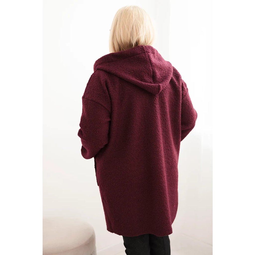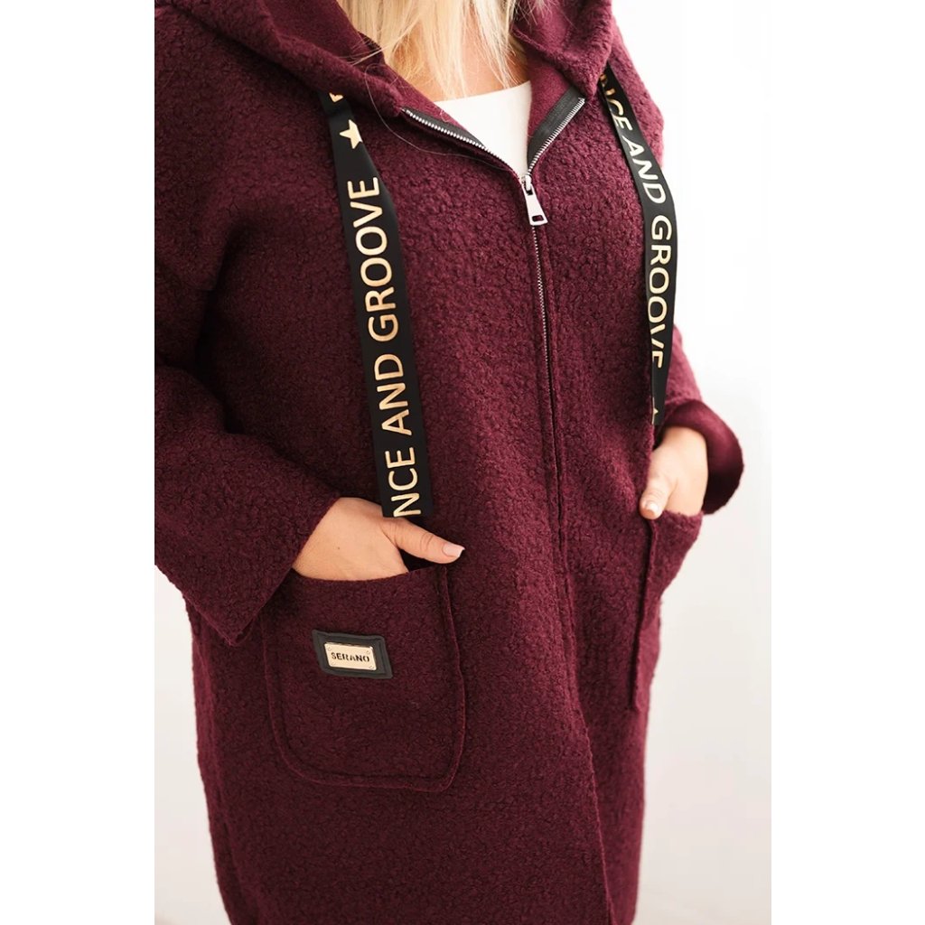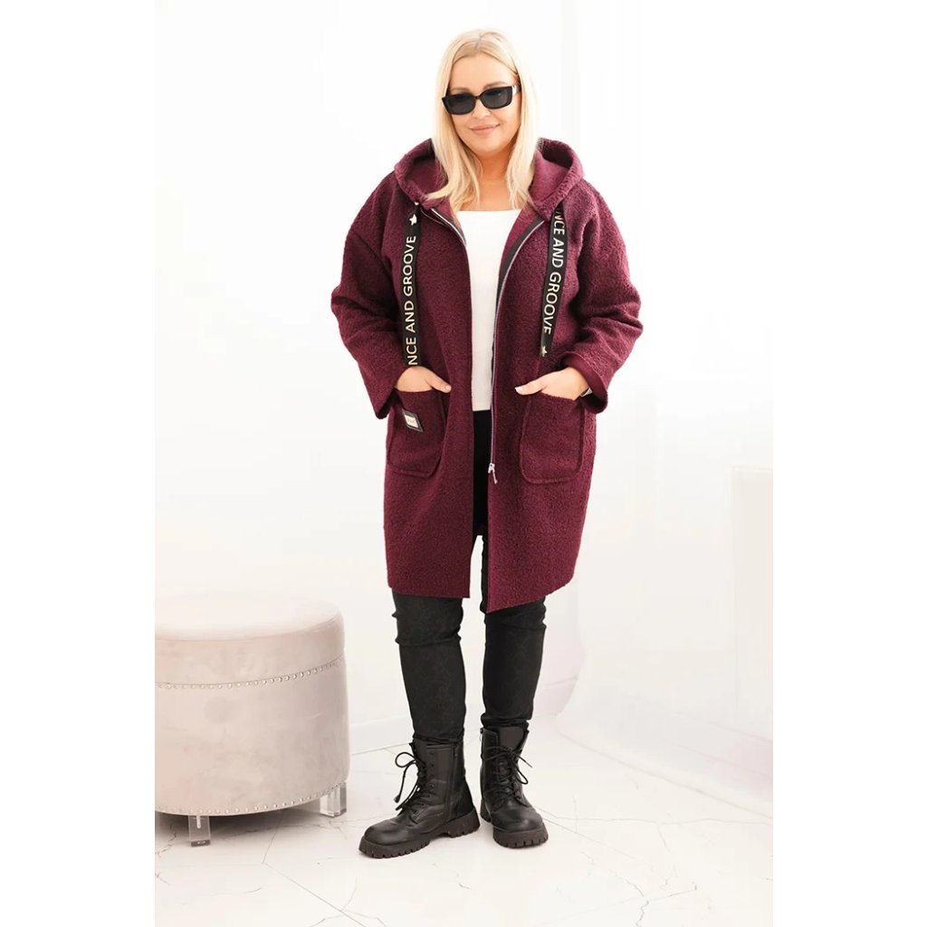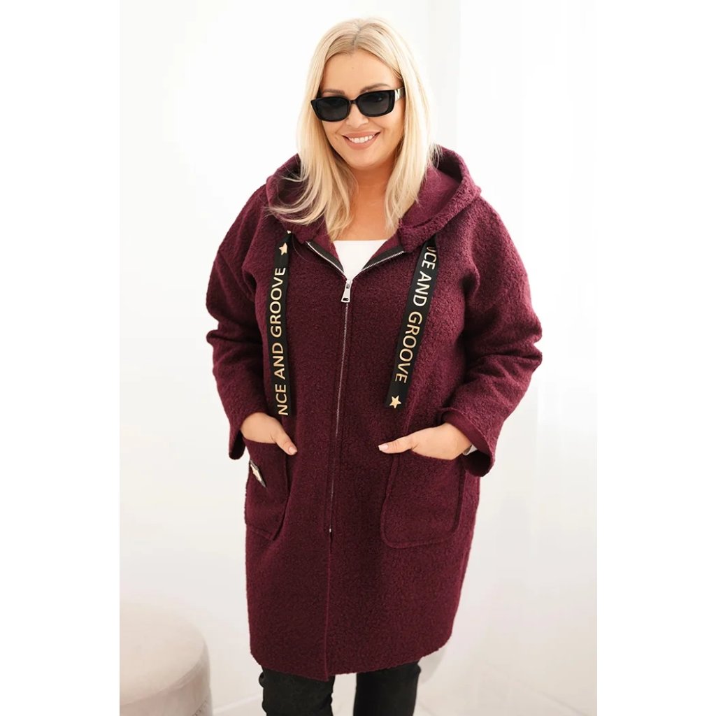 Dámsky kabát Plus Size z umelej baránkovej látky s kapucňou a vreckami