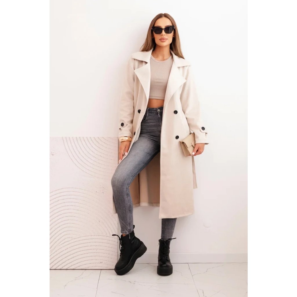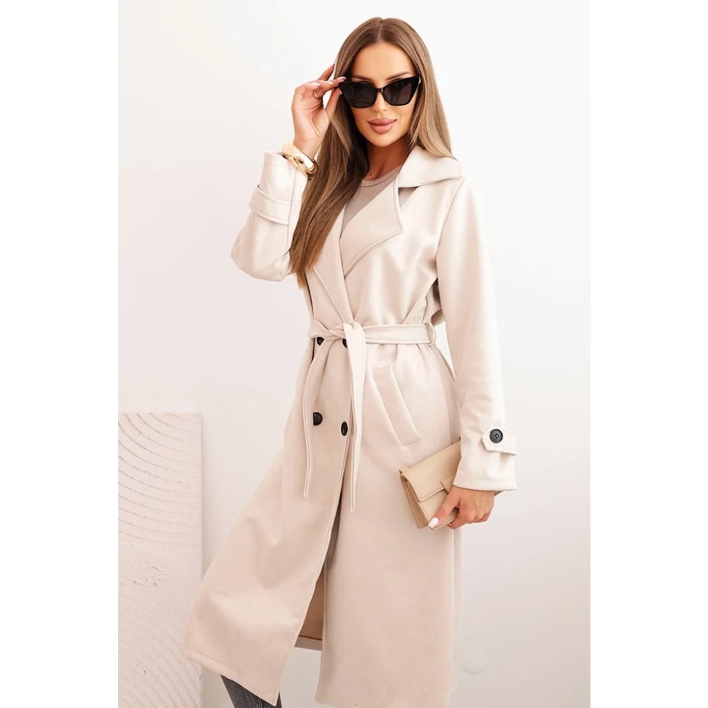 Dámsky kabát v páse s golierom a gombíkmi Dona