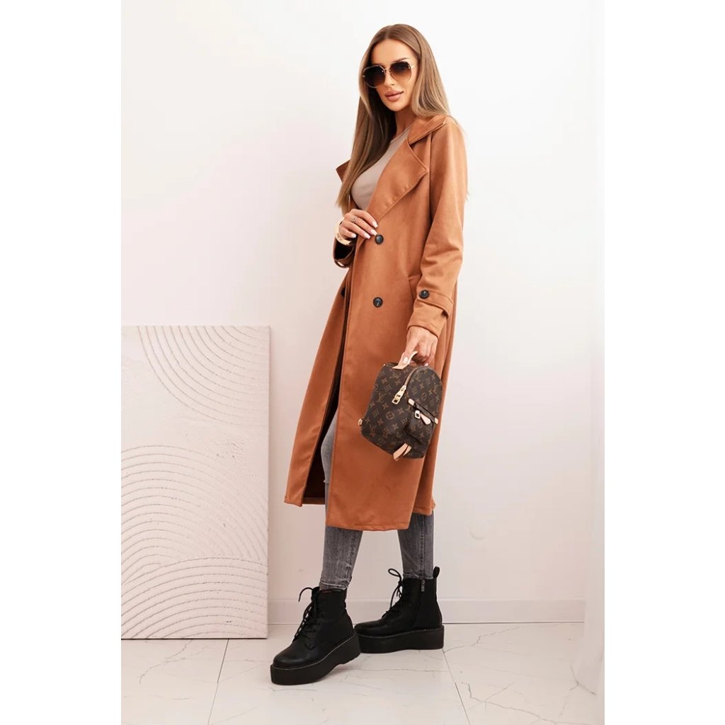 Elegantný dámsky kabát s klasickým, predĺženým strihom je skvelým návrhom na jesennú a zimnú sezónu pre ženy, ktoré ocenia štýl a pohodlie. Model je vybavený širokým golierom, praktickými vreckami a opaskom v páse, ktorý krásne zvýrazňuje siluetu. Dĺžka nad kolená a dvojité zapínanie na gombíky dodávajú kabátu elegantný, nadčasový charakter.