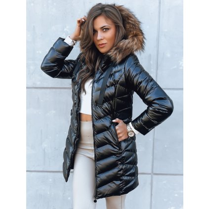Dámsky kabát z eko-kože Plus Size s opaskom a golierom čierna