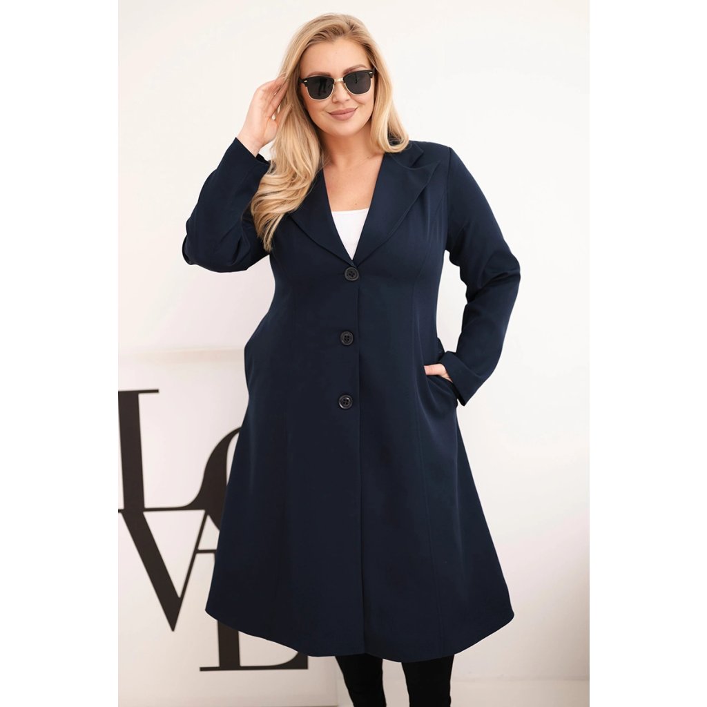 Dámsky klasický kabát Plus Size s gombíkmi a golierom modrý