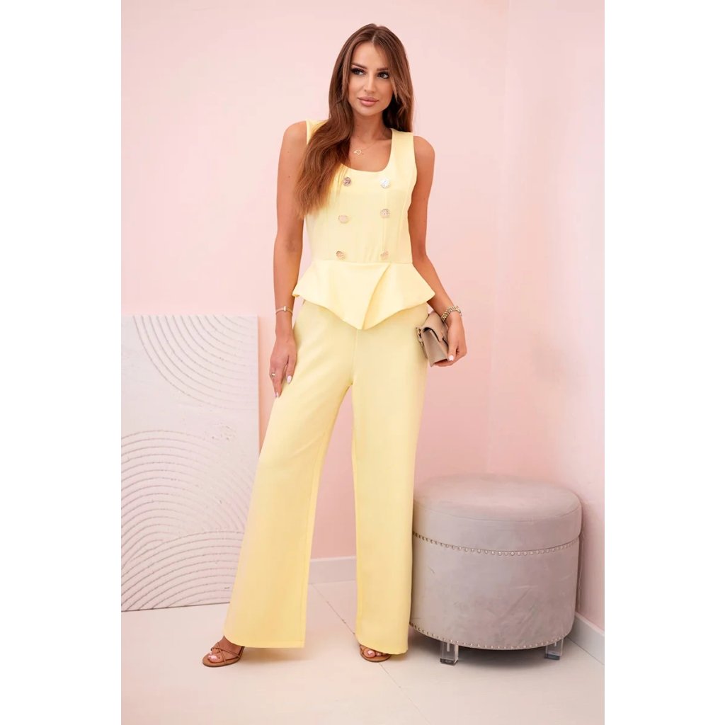 Dámsky komplet bez rukávov so širokými nohavicami a ozdobnými gombíkmi - výpredaj