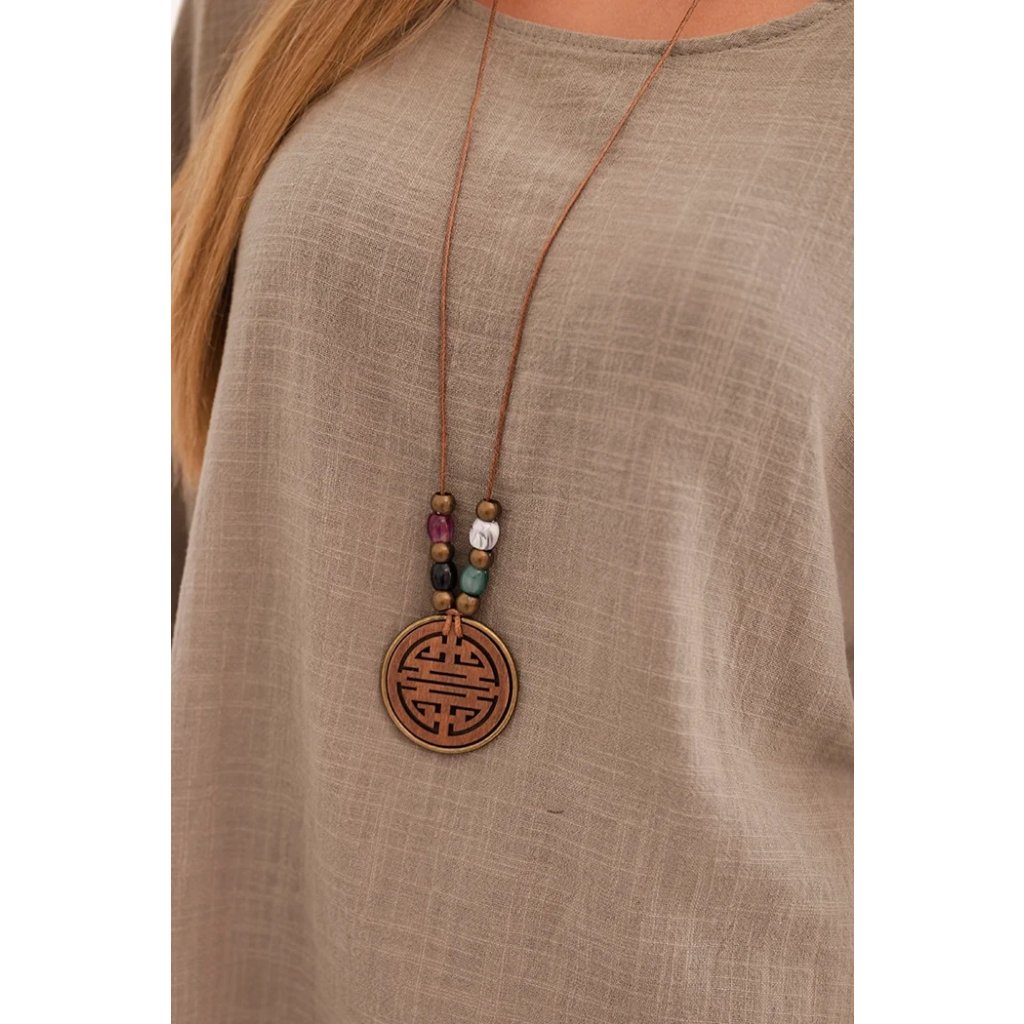 - Blúzka s rukávom 3/4, ozdobená náhrdelníkom na šnúrke