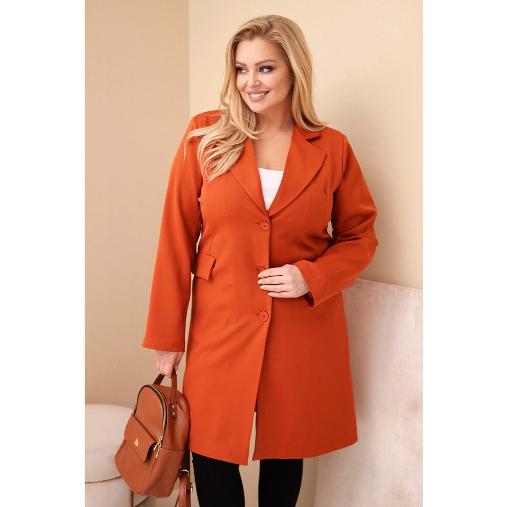 Štýlový, dlhý dámsky kabát klasického strihu je vynikajúcou voľbou pre ženy, ktoré oceňujú eleganciu a komfort na každý deň. Model zapínaný na gombíky, s výrazným golierom a vreckami s chlopňami, sa ideálne hodí ako doplnok k elegantným aj casualovým štylizáciám. Dĺžka pod boky a mierne elastický materiál zaručujú pohodlie a voľnosť pohybu. Ideálny na prechodné obdobie – do práce, do mesta alebo na výnimočné príležitosti.
