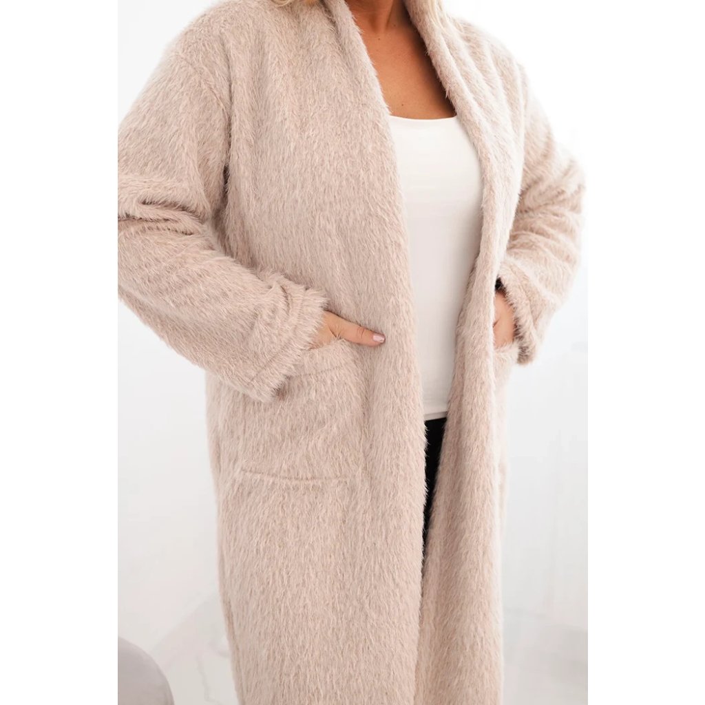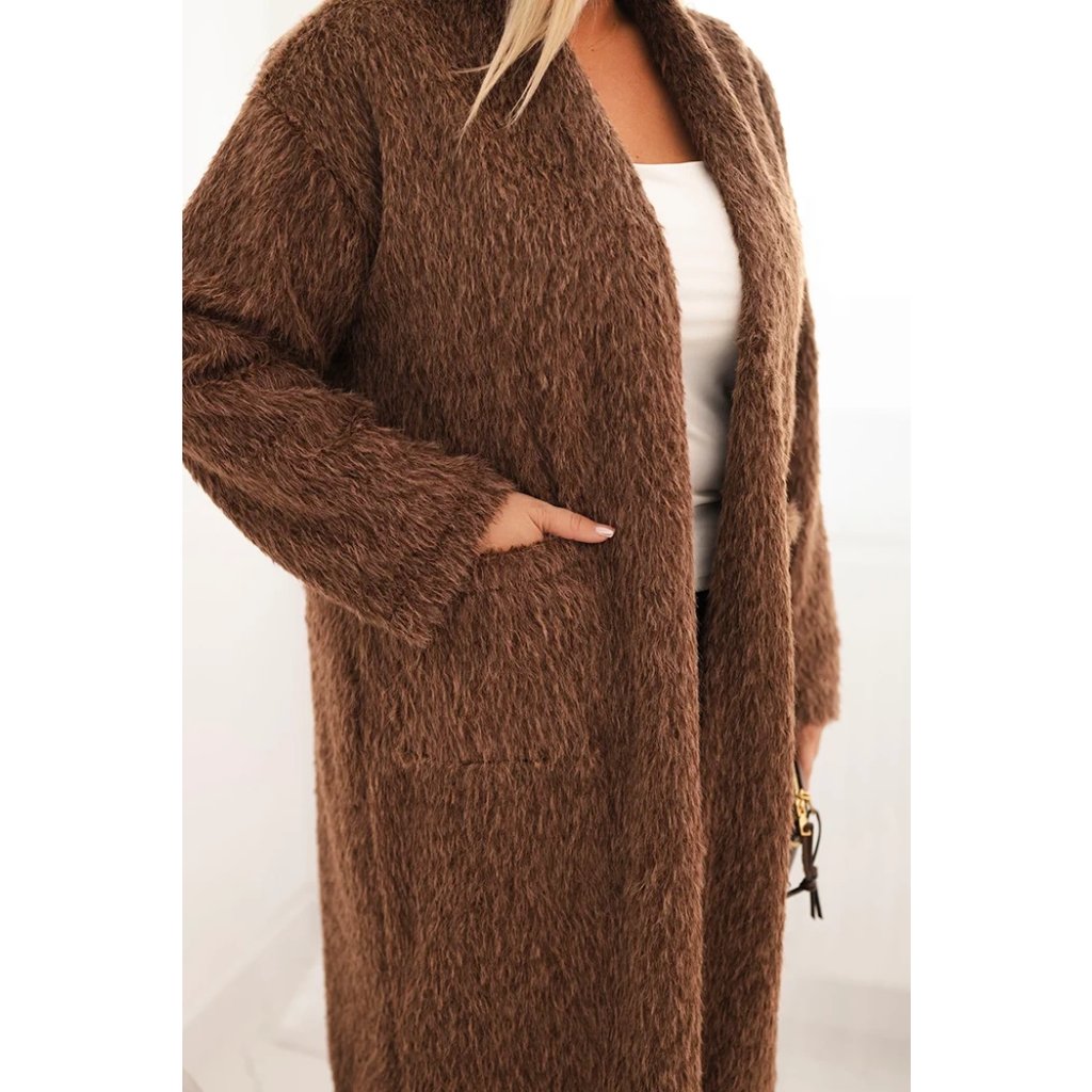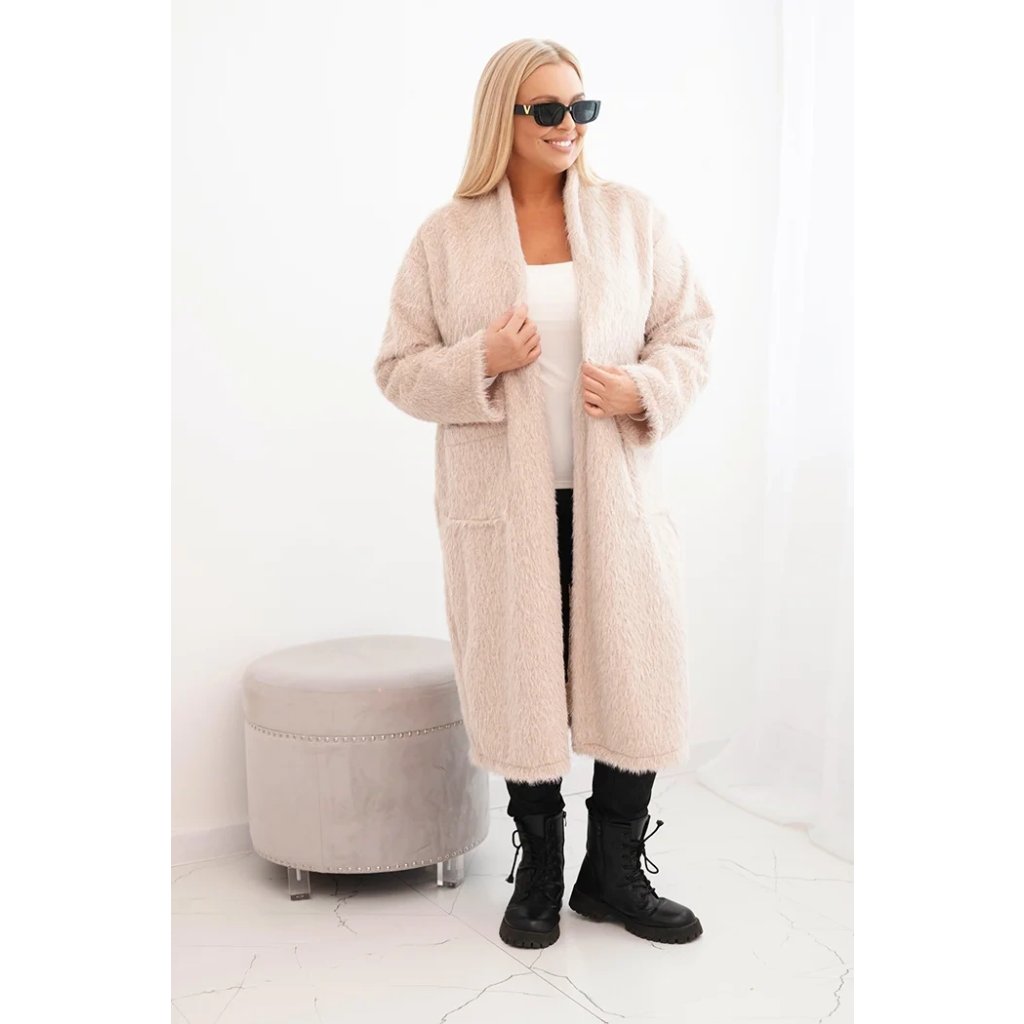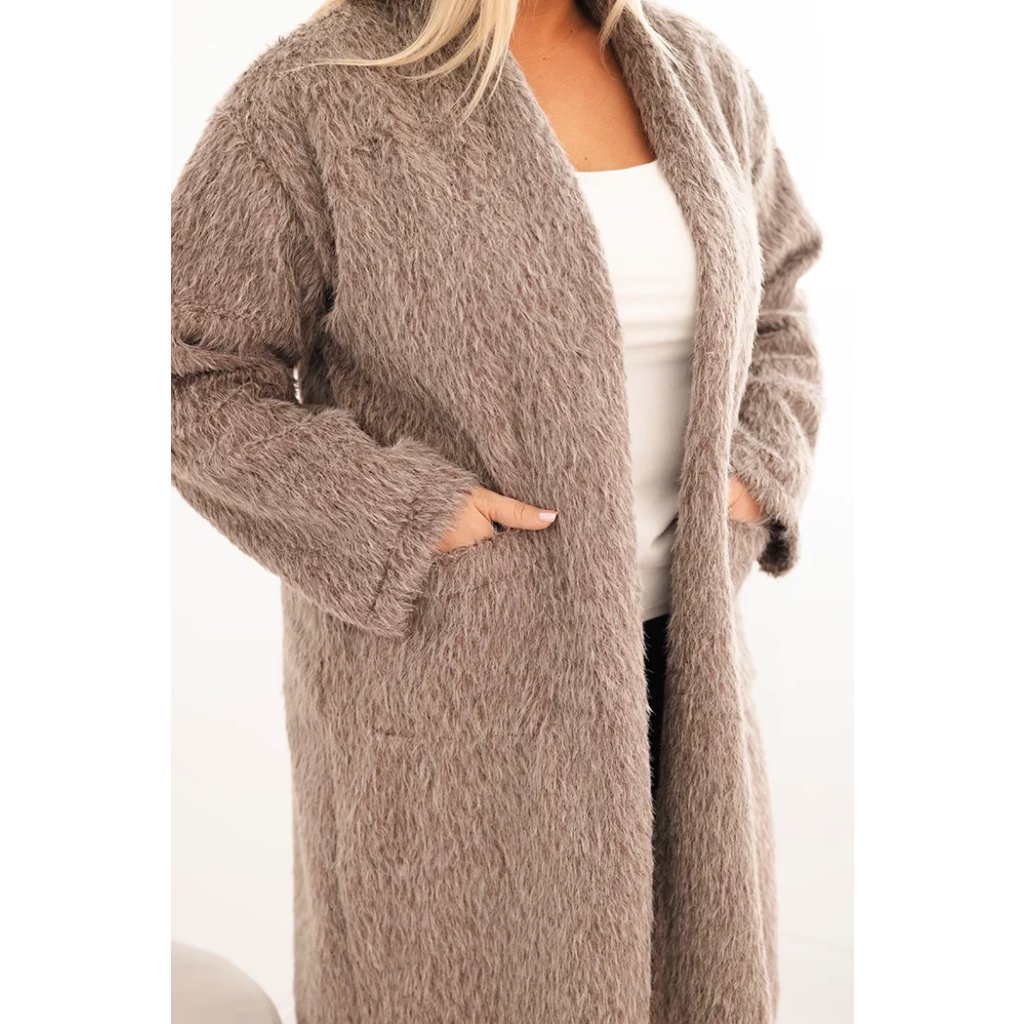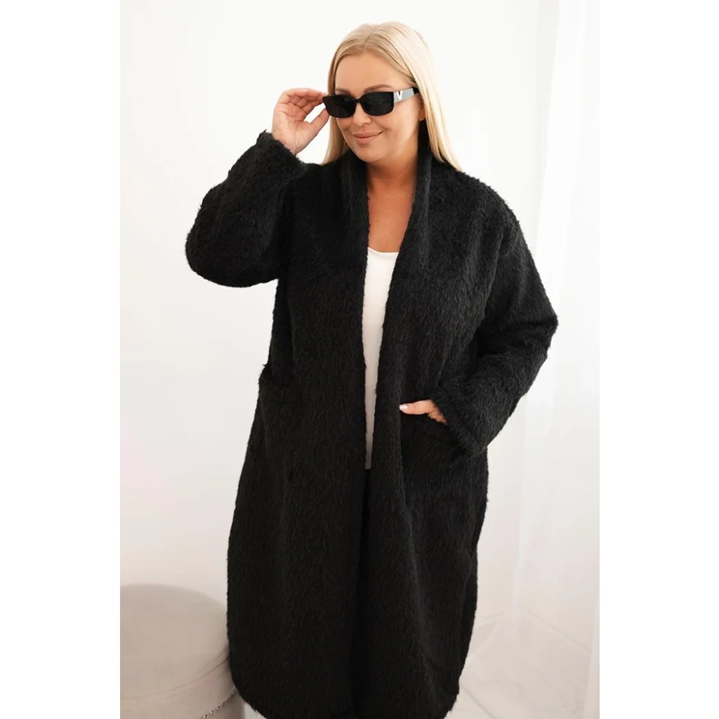 Dámsky kabát Plus Size 21789 z viskózy bez zapínania a s vreckami