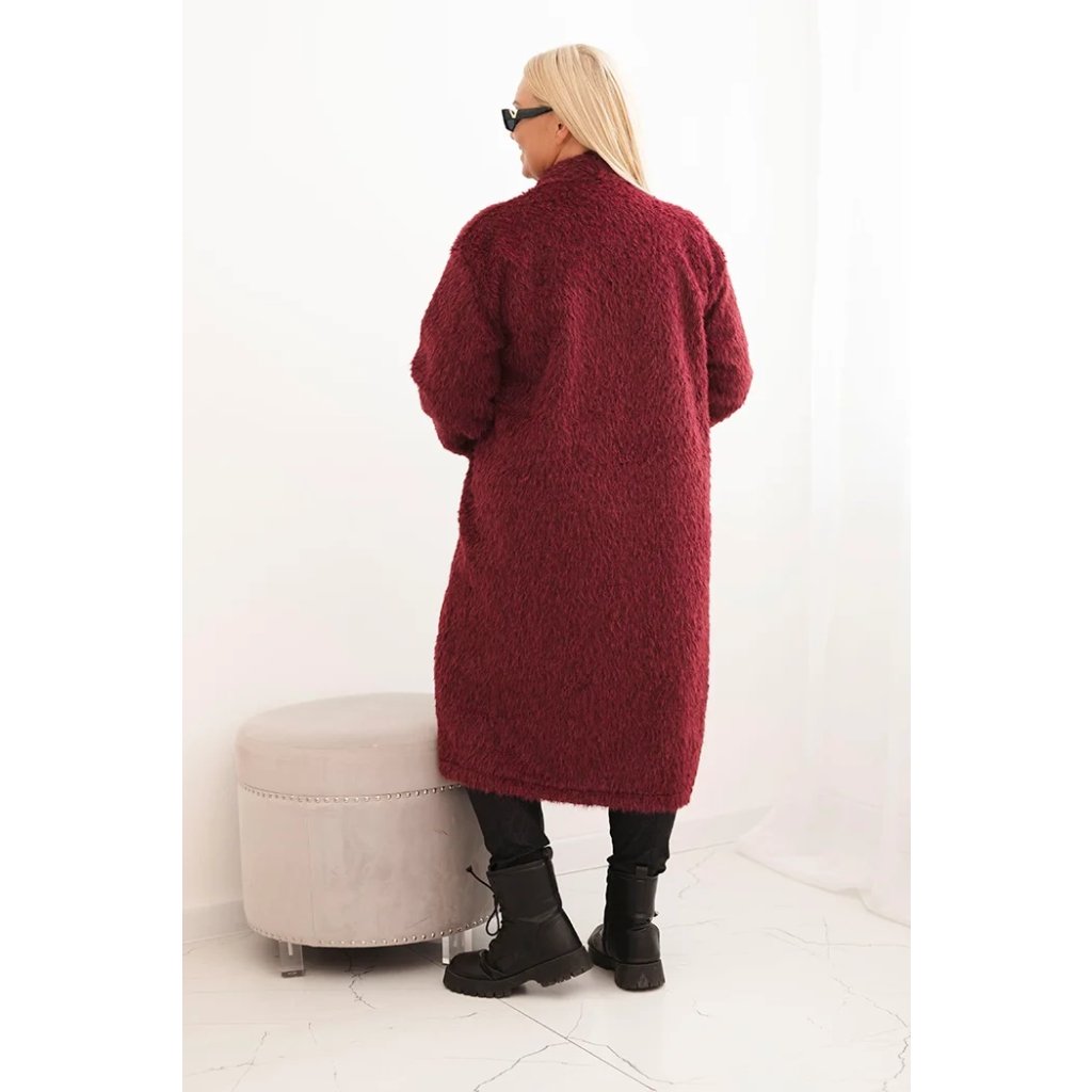 Štýlový dámsky kabát Plus Size s jednoduchým, otvoreným strihom je ideálnou voľbou na chladnejšie dni pre ženy, ktoré si cenia pohodlie a módny vzhľad. Vyrobený z príjemného na dotyk, štruktúrovaného úpletu, jemne obopína siluetu a jeho dĺžka zoštíhľuje a dodáva eleganciu.
