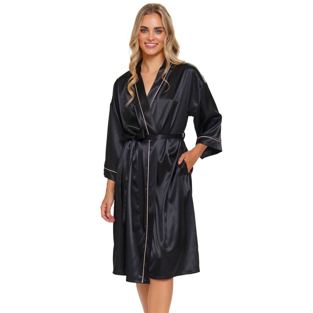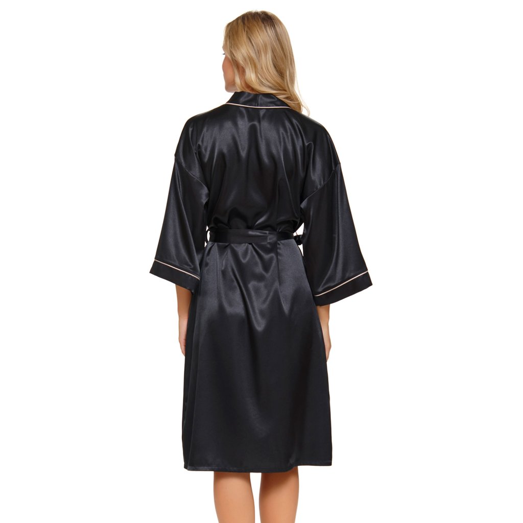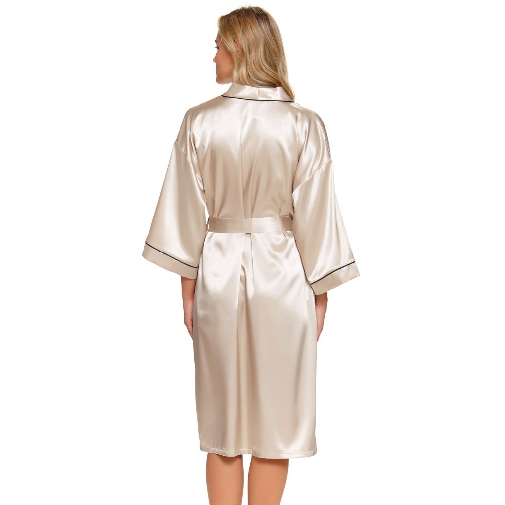 Elegantný saténový župan.Strih kimono s kontrastným lemovaním